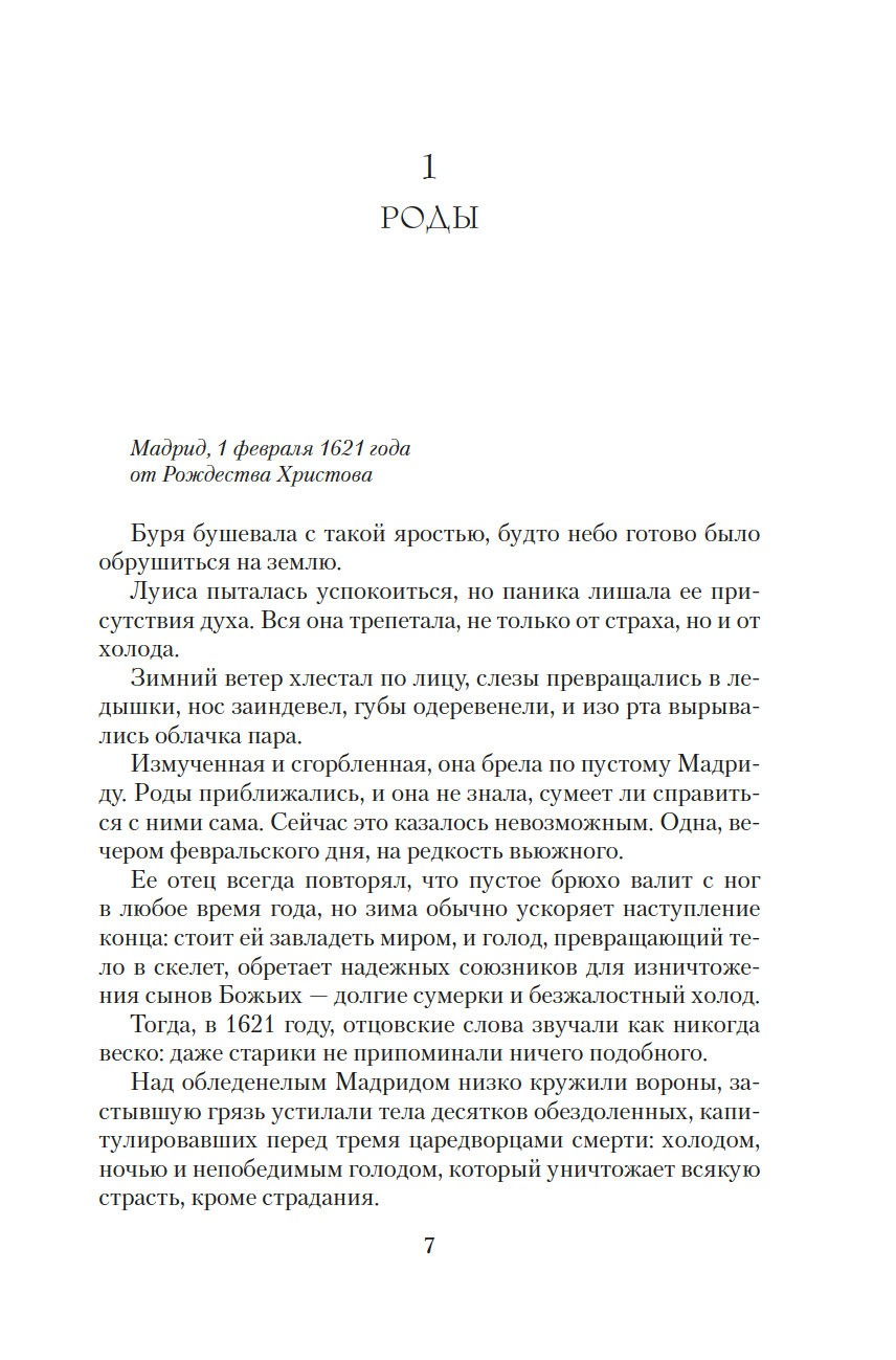 Суровой зимой 1620 года страшное двойное убийство сеет панику в Мадриде: найдены трупы молодой женщины и ребенка, у которого вырезано сердце. Городские сплетники вскоре назначают преступником уважаемого и возмутительно порядочного нотариуса Себастьяна Кастро. Убийца, настроивший весь Мадрид против невиновного, разгуливает на свободе, а Кастро, который неосторожно засвидетельствовал завещание одного очень совестливого аристократа, даже не подозревает, чем рисковал. Достаточно одного доноса узколобого и напуганного горожанина – и несколько жизней разбиты вдребезги.
