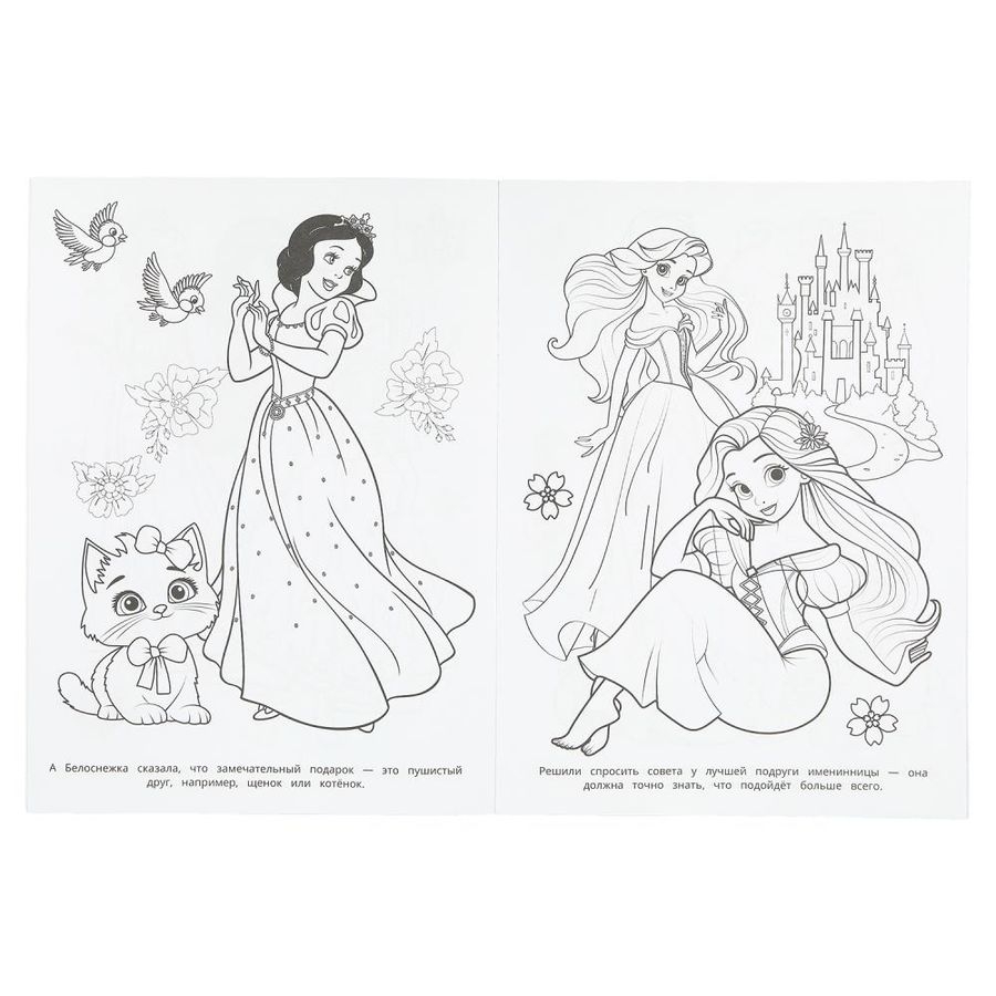 Эта занимательная раскраска про сказочных принцесс не только скрасит досуг ребёнка, но и поможет потренировать руку к письму. Внутри детей ожидают интересные картинки с чётким контуром и сюжетные тексты к ним. Благодаря удобному формату раскраску можно взять с собой в дорогу.