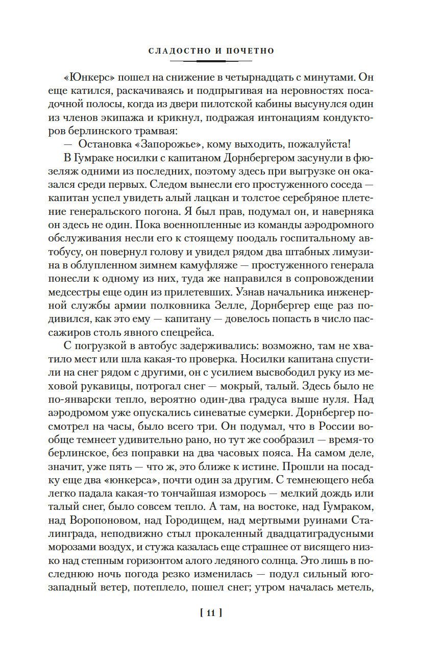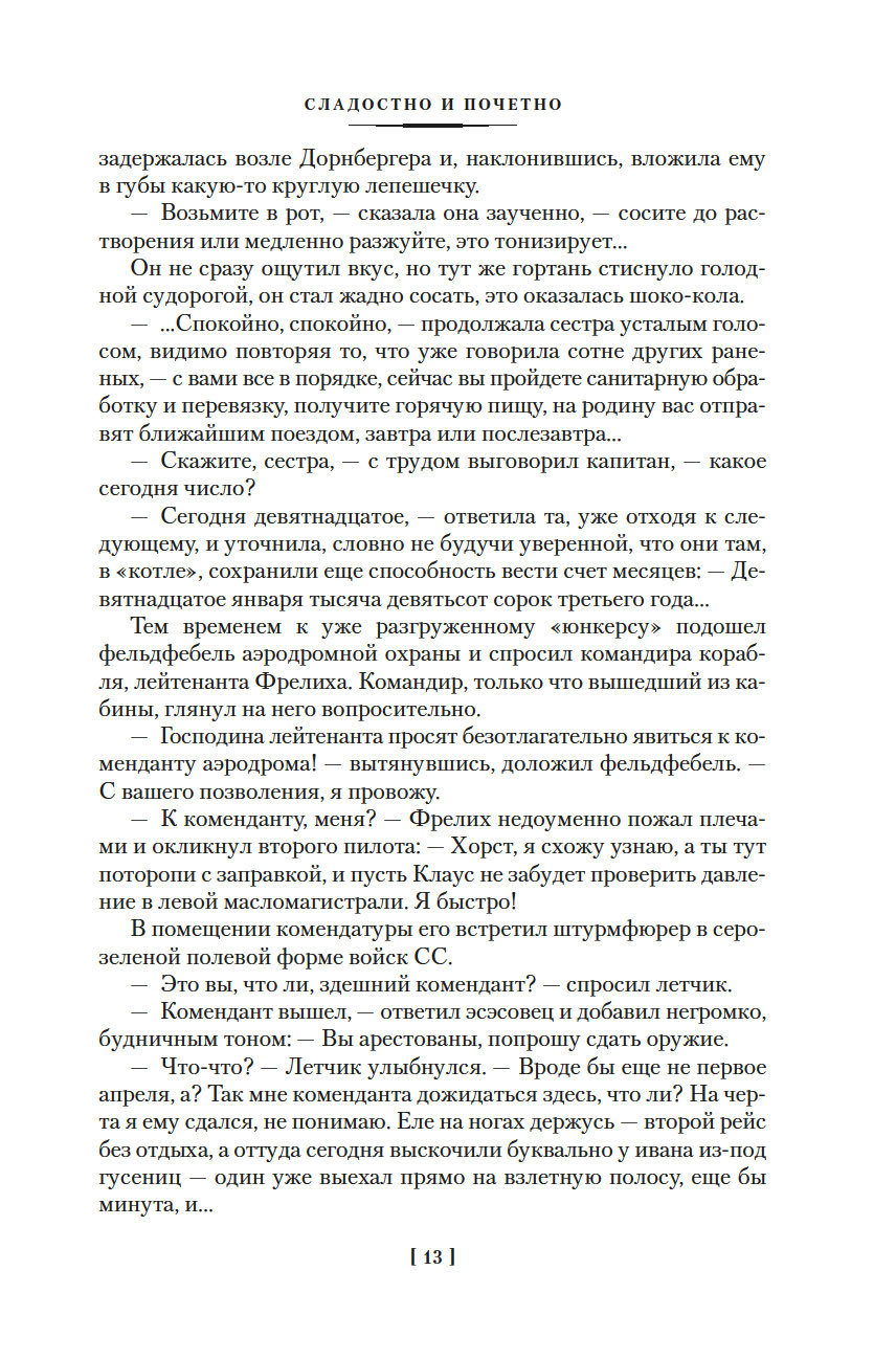 Действие в романе "Сладостно и почетно" разворачивается в Германии. В центре повествования – "заговор генералов" 1944 года, покушение на Гитлера и попытка государственного переворота. И хотя война показана почти исключительно глазами немцев, немалую часть сюжета занимает описание судеб "восточных рабочих", насильно вывезенных из СССР. Среди них и героиня "Перекрестка" Людмила Земцева, случайное знакомство которой с одним из заговорщиков – офицером вермахта – перерастает в большое, сильное чувство.