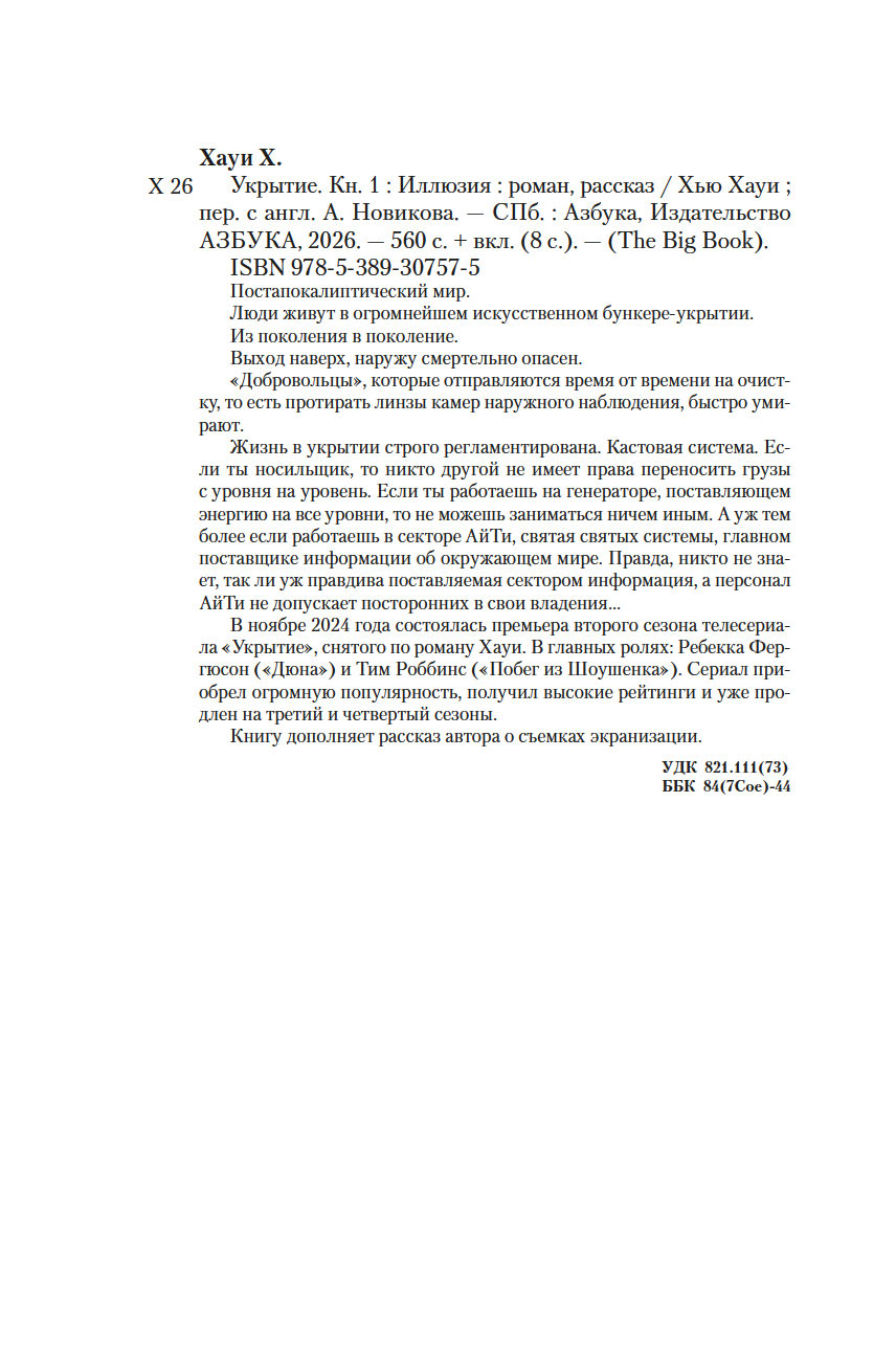 В ноябре 2024 года состоялась премьера второго сезона телесериала "Укрытие", снятого по роману Хауи. В главных ролях: Ребекка Фергюсон ("Дюна") и Тим Роббинс ("Побег из Шоушенка"). Сериал приобрел огромную популярность, получил высокие рейтинги и уже продлен на третий и четвертый сезоны.
