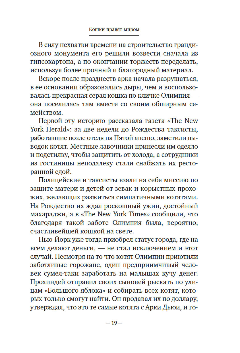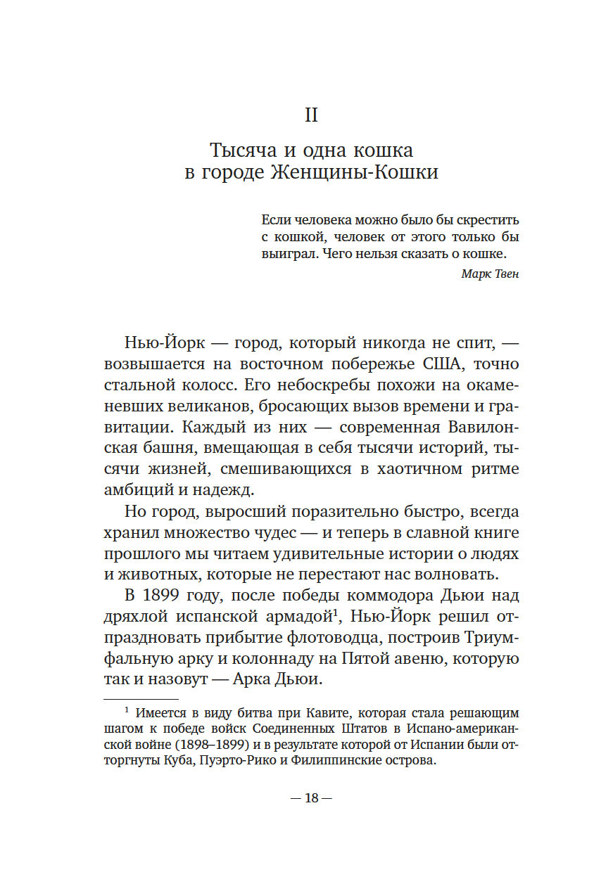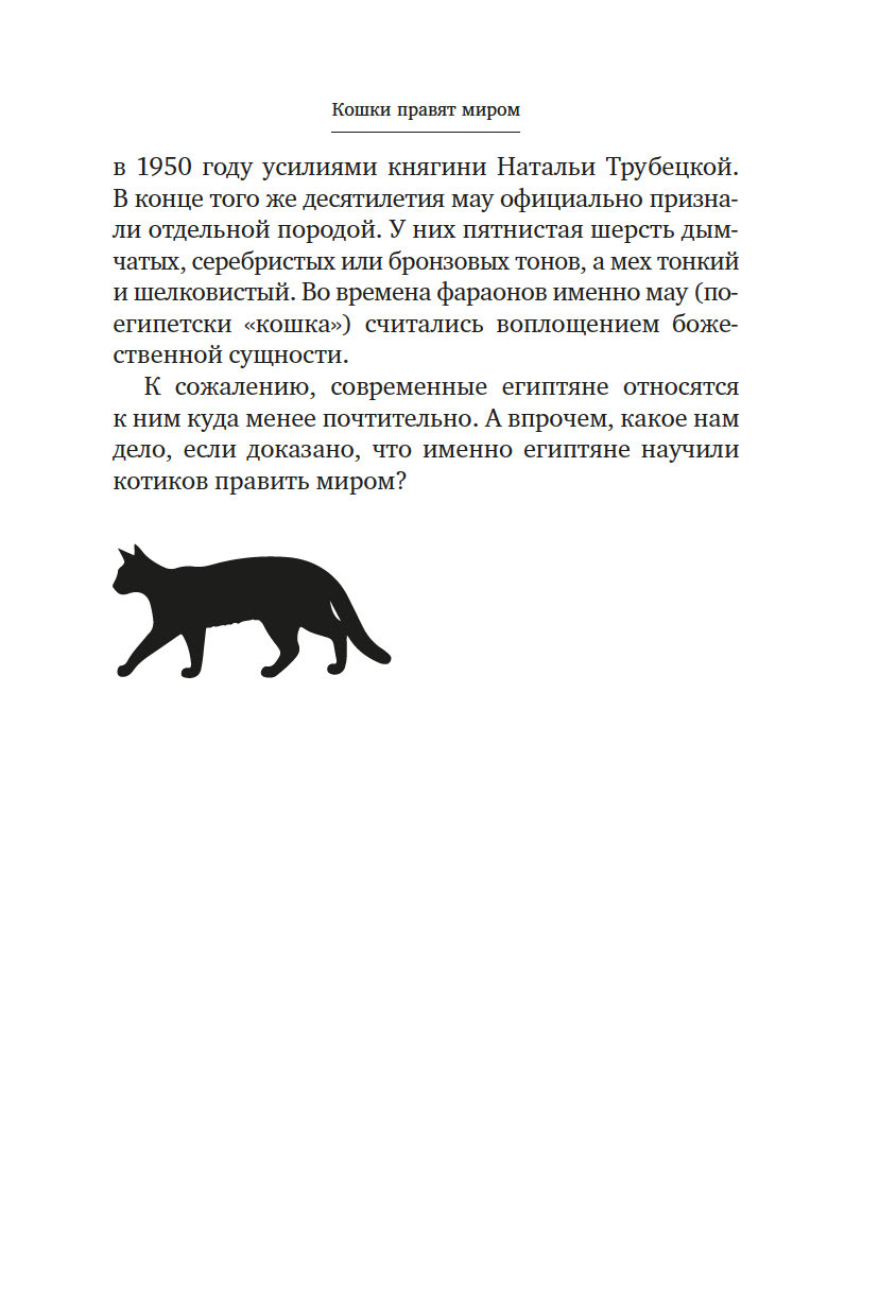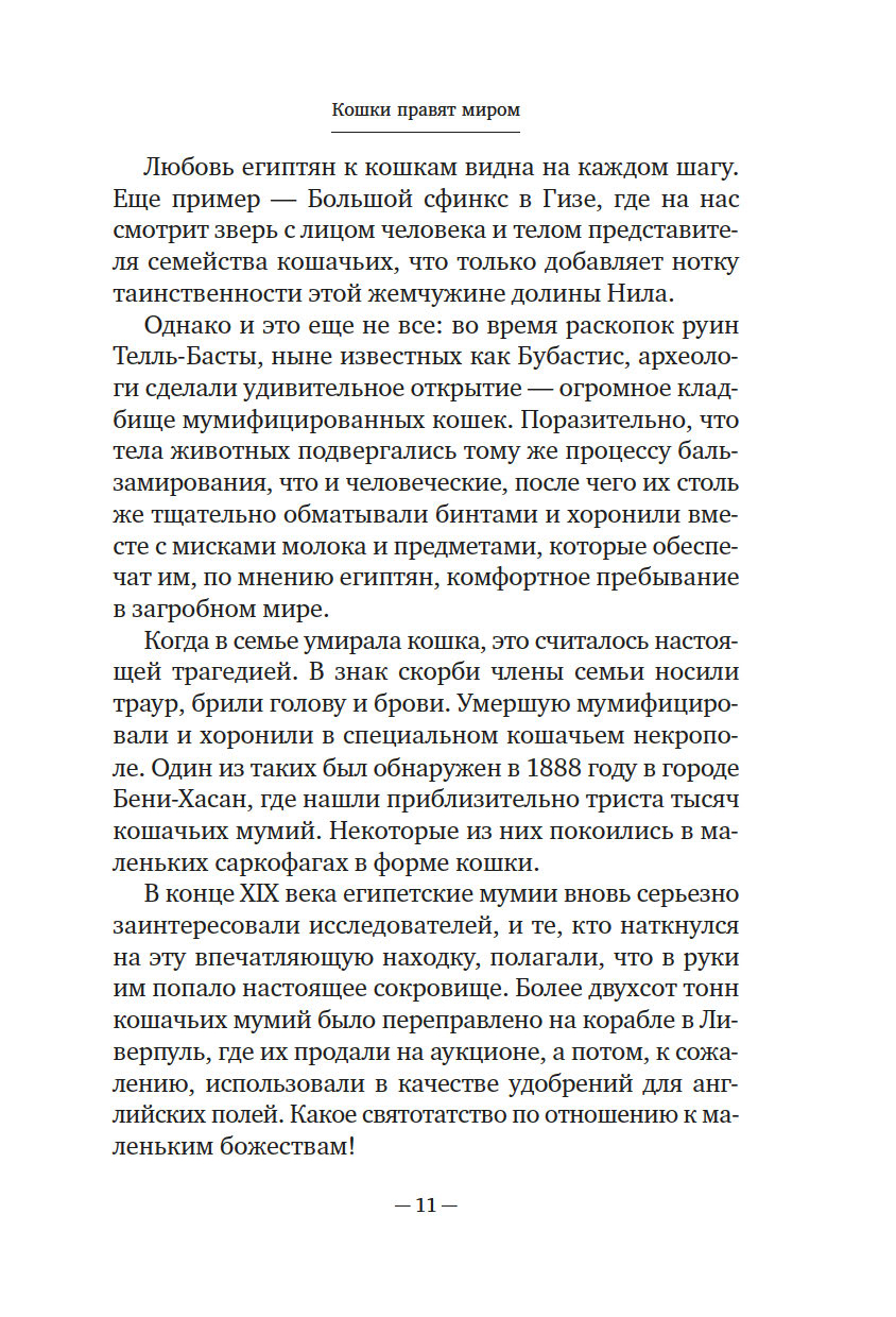 Любовь человека к домашним представителям семейства кошачьих уходит корнями в нашу и их давнюю историю. Например, известно ли вам, что египетские женщины брили голову и носили траур, когда умирала их кошка? Или что, забрав домой заслуженного кота из мышеловной армии Эрмитажа, можно получить право на бесплатное посещение музея? Или что в начале XX века нью-йоркские газеты публиковали истории из жизни усатых наряду с новостями о важнейших политических событиях?