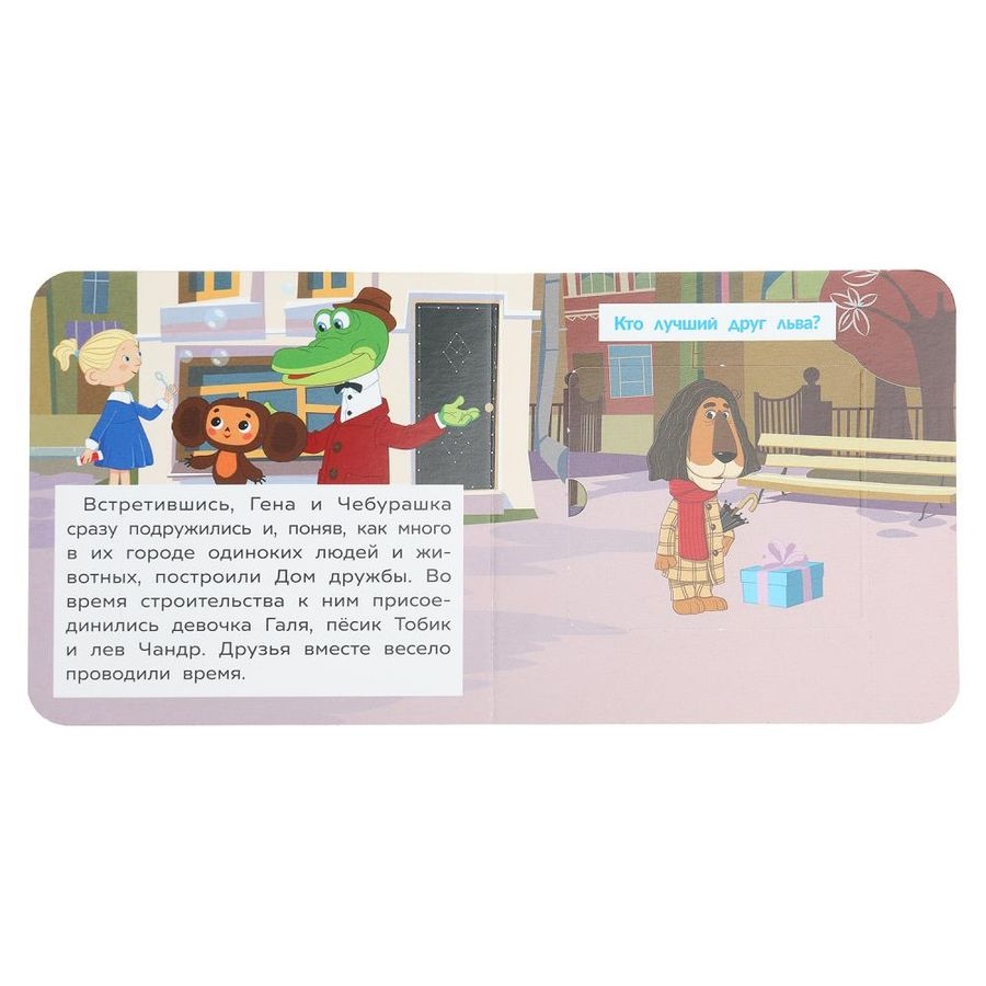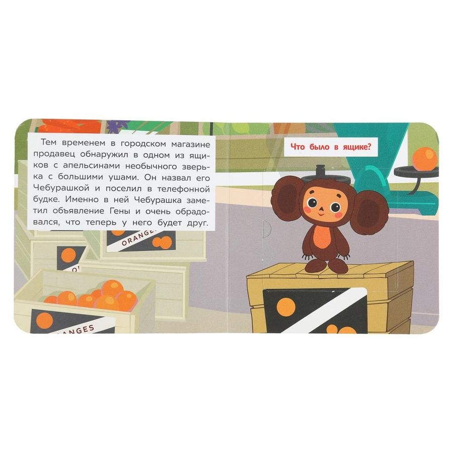 Малыш будет с удовольствием рассматривать яркие страницы с изображениями любимых героев, вместе со взрослыми читать увлекательную историю про приключения милого ушастика Чебурашки и его друзей и открывать волшебные окошки, чтобы узнать, кто или что за ними прячется. Благодаря компактному формату книгу можно повсюду брать с собой, она легко помещается в сумочку или рюкзак.