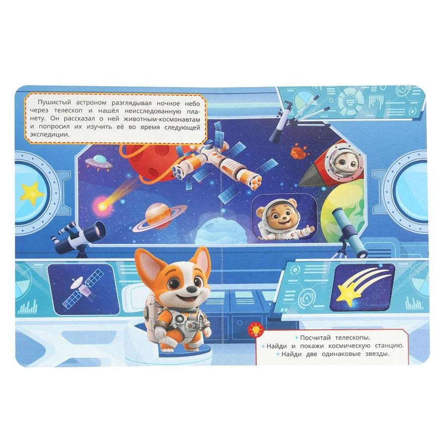 Малыш с удовольствием будет рассматривать яркие страницы с изображением милых животных в космосе, выполнять увлекательные задания и заглядывать в чудо-окошки, делая весёлые открытия! Книжка сделана из плотного картона, поэтому мамы могут не опасаться, что ребёнок порвёт странички.