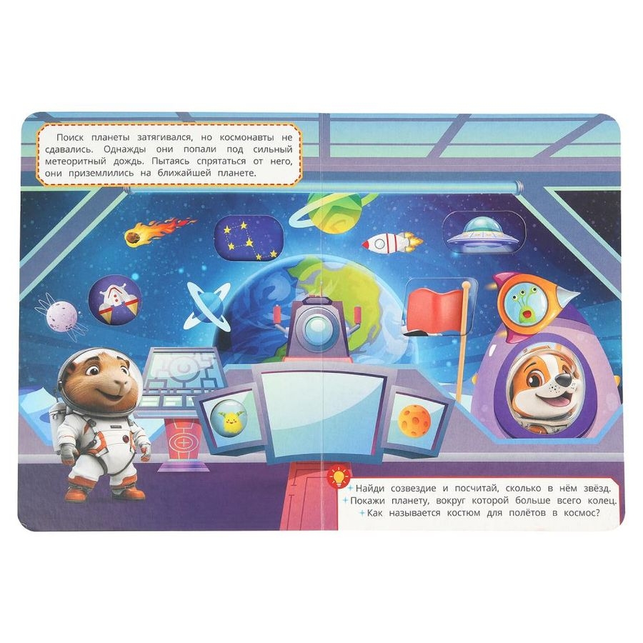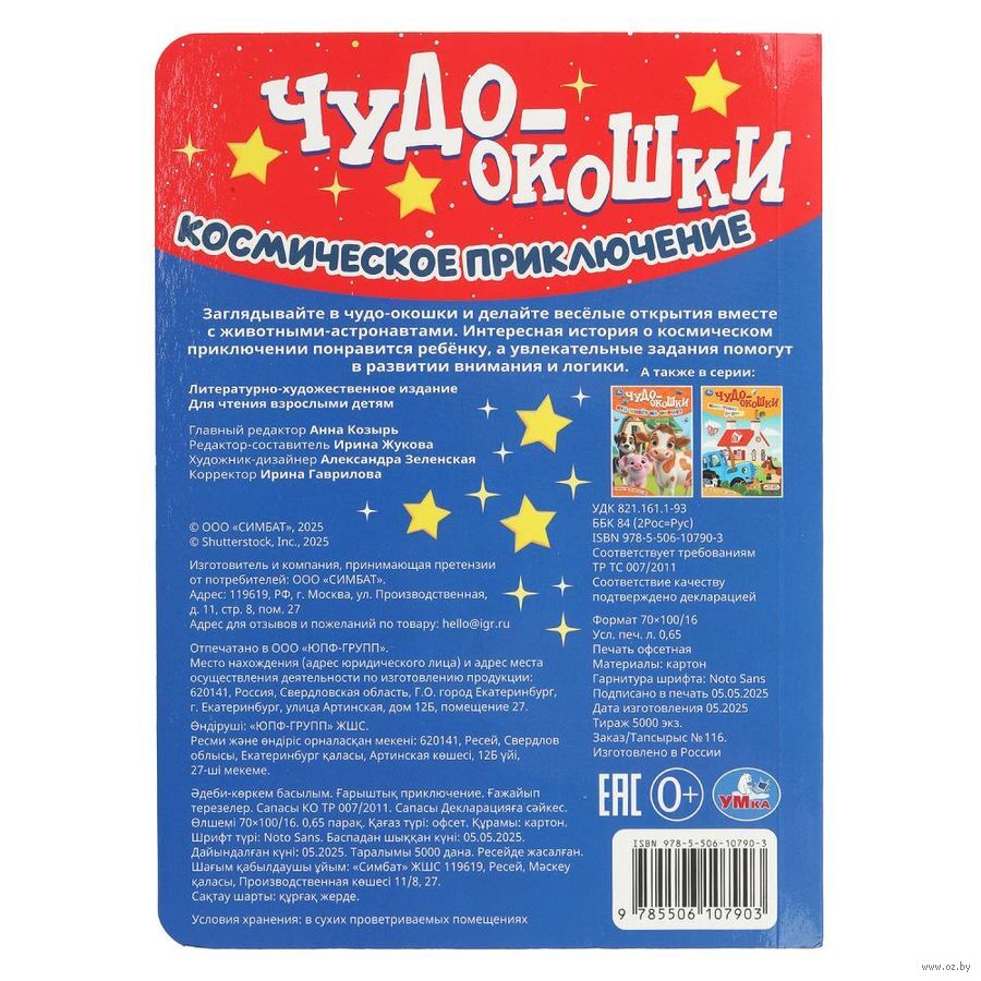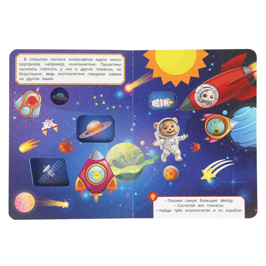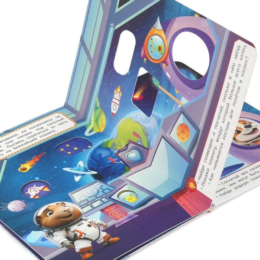 Картонная книжка "Космическое приключение" из серии "Чудо-окошки" станет прекрасным обучающим подарком для ребёнка: