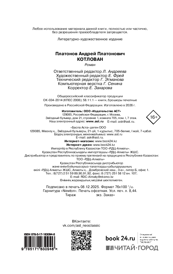 | Изготовитель | Творческое кооперативное объединение «АСТ». 129085, РФ, г. Москва, б-р Звездный, 21, стр. 1 |