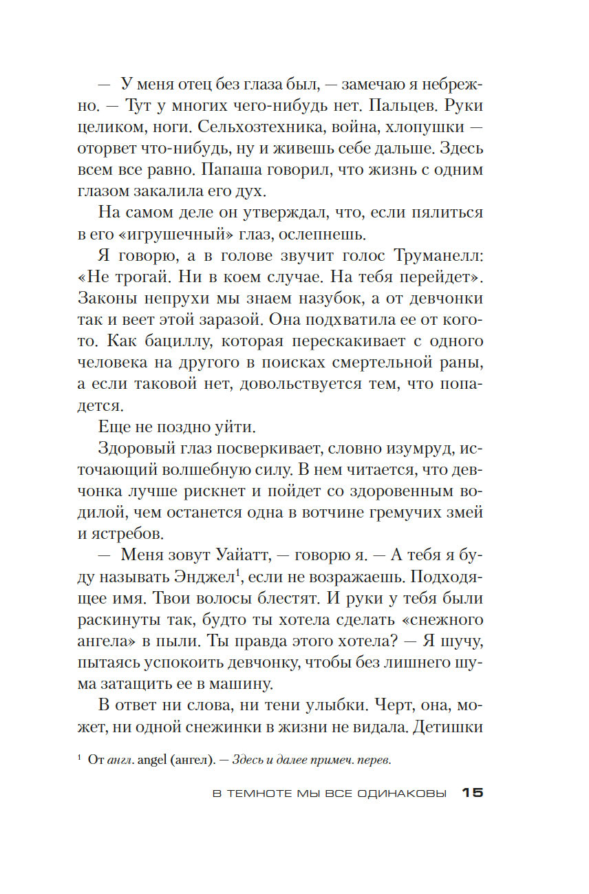 Одетта Такер, самая молодая из местных полицейских, уверена, что сумеет и помочь найденышу, получившему прозвище Энджел (Ангел), и наконец раскрыть тайну случившегося той ночью, когда исчезла Труманелл, подруга ее детства, – ночью, когда все изменилось...