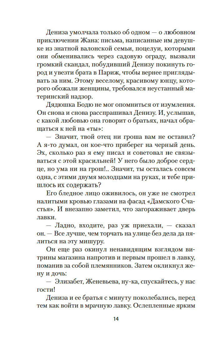 Но не таким предстал Париж глазам юной провинциалки Денизы, не ищущей роскоши и блеска, однако вынужденной переехать в столицу после смерти родителей. На миг ошеломив девушку роскошью витрин небывалого универмага "Дамское Счастье", принадлежащего Муре, парижская жизнь не замедлила показать Денизе, насколько печальной может быть участь тех, кому не столь повезло…