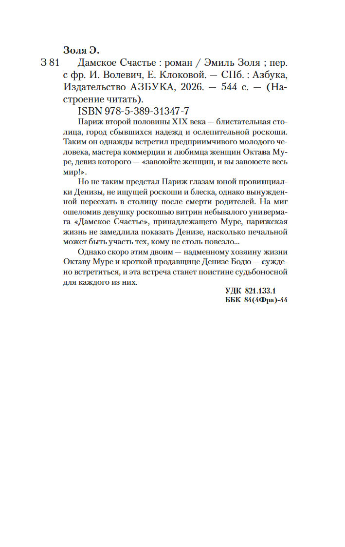 Париж второй половины XIX века – блистательная столица, город сбывшихся надежд и ослепительной роскоши. Таким он однажды встретил предприимчивого молодого человека, мастера коммерции и любимца женщин Октава Муре, девиз которого – "завоюйте женщин, и вы завоюете весь мир!".