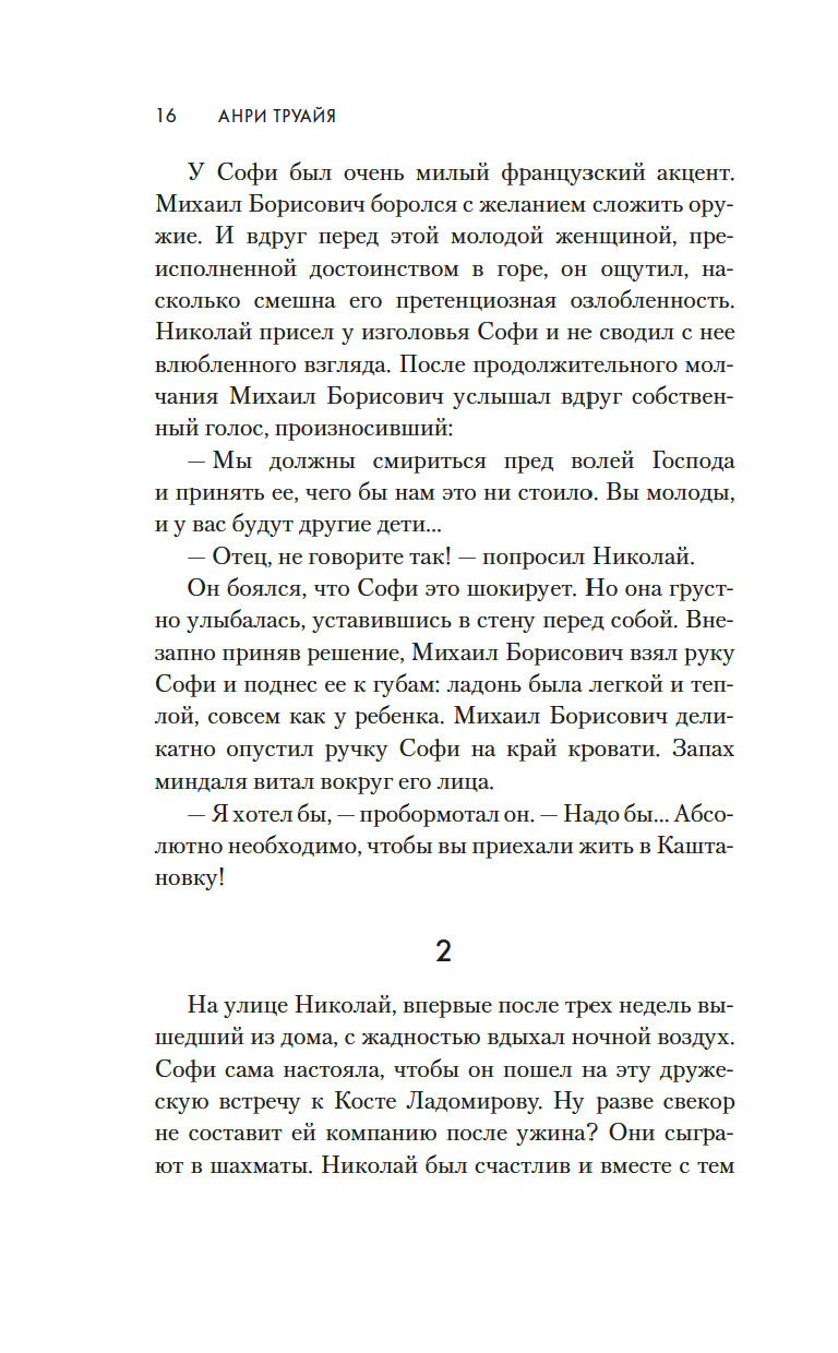 Софи многого не понимает и не принимает в российской жизни, и прежде всего ей кажется чудовищным, что здесь все еще существует рабство. Она пытается облегчить жизнь крепостных, к неудовольствию свекра. Но даже на него, деспотичного, брюзгливого старика, действует очарование Софи, ее обаяние, красота, готовность помочь каждому, кто нуждается в ее участии.
