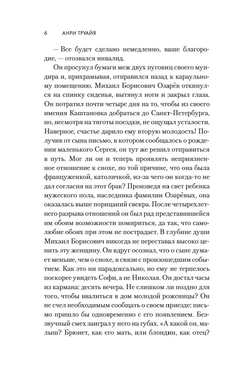 Поручик Николай Озарёв возвращается после заграничного похода в Россию не один. Во Франции он без ума влюбляется в красавицу Софи де Шамплит – умную, самостоятельную, резкую в суждениях, к тому же республиканку и добивается ее руки и сердца.