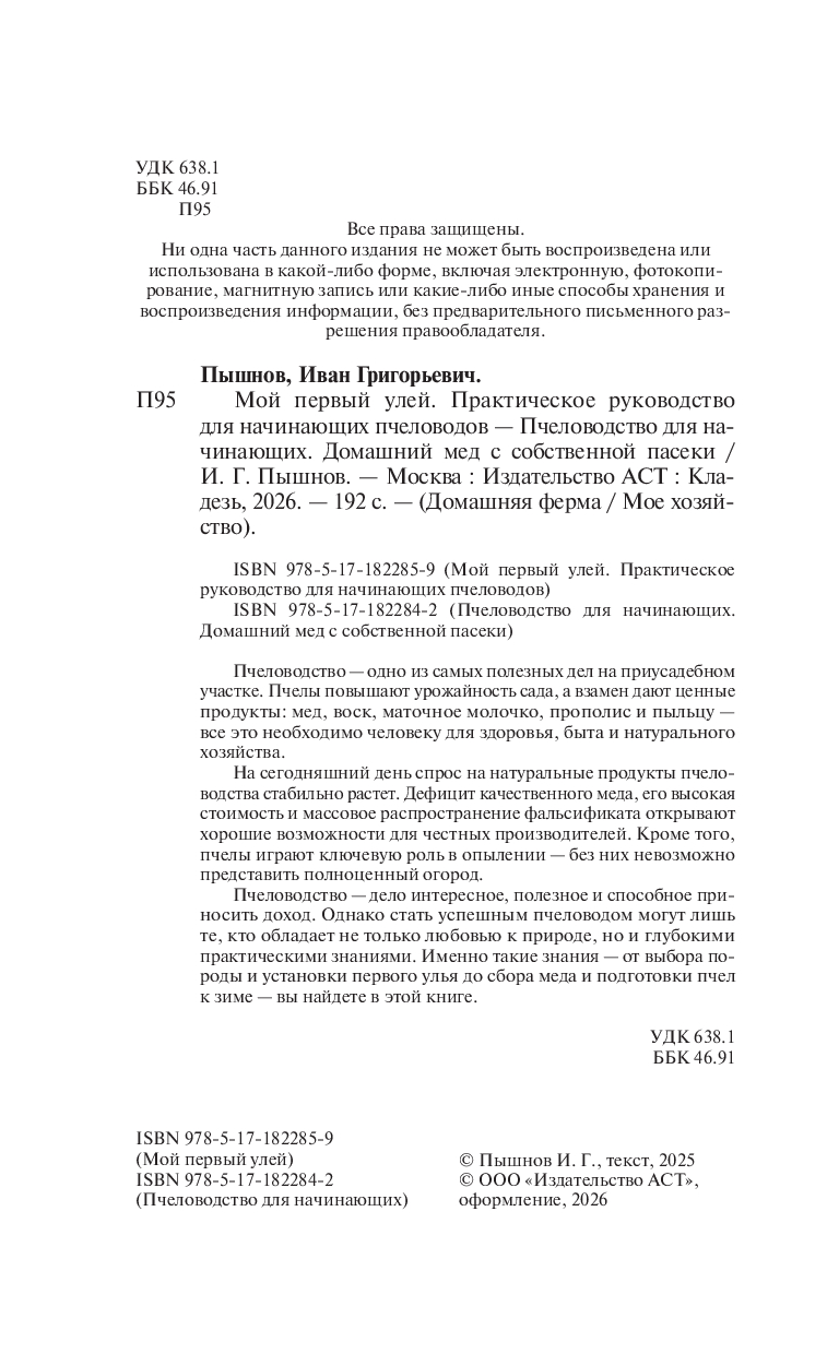 Пчеловодство – дело интересное, полезное и способное приносить доход. Однако стать успешным пчеловодом могут лишь те, кто обладает не только любовью к природе, но и глубокими практическими знаниями. Именно такие знания – от выбора породы и установки первого улья до сбора мёда и подготовки пчёл к зиме – вы найдёте в этой книге.