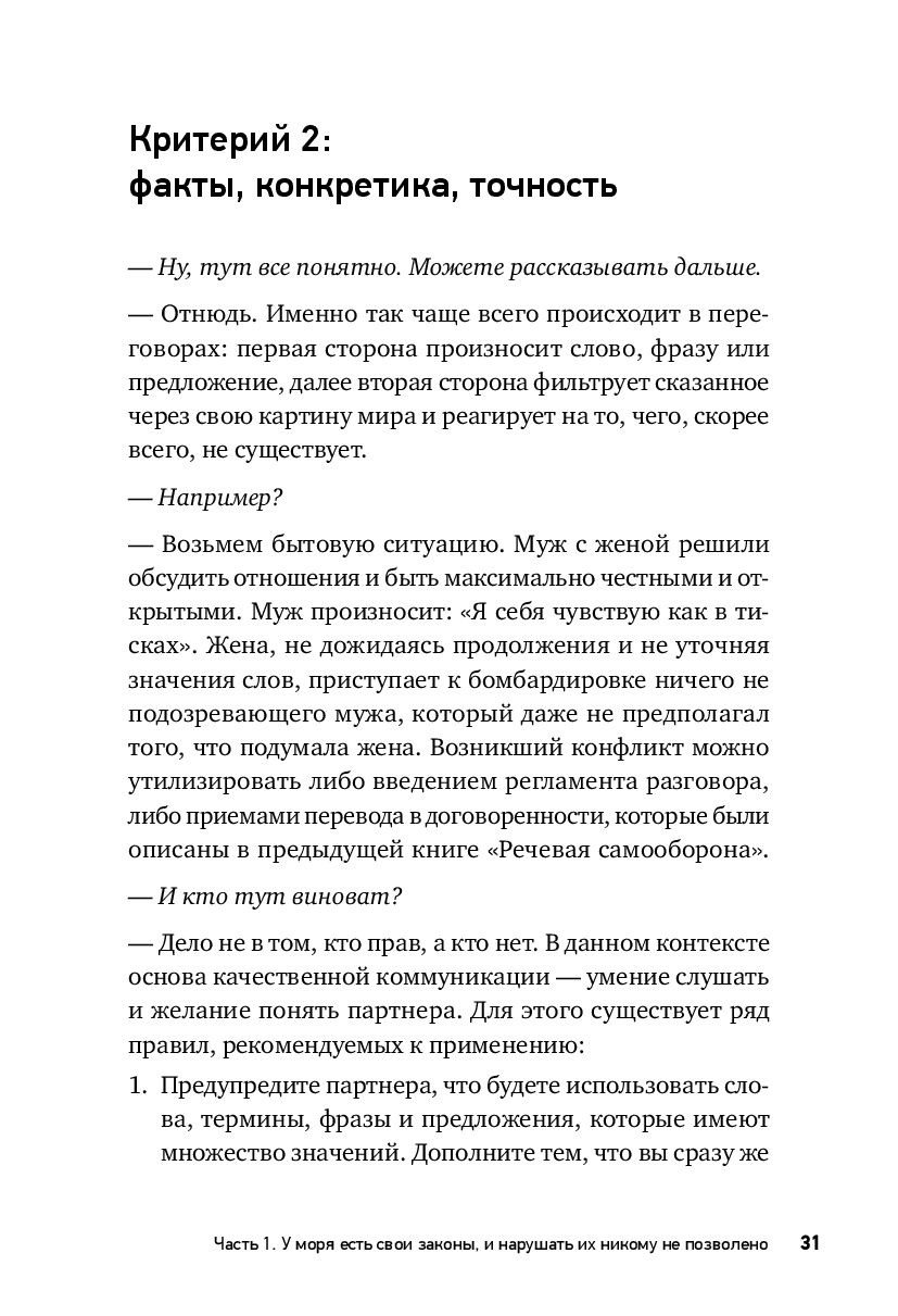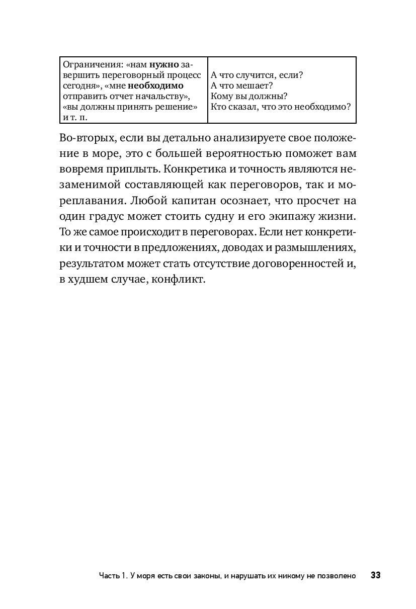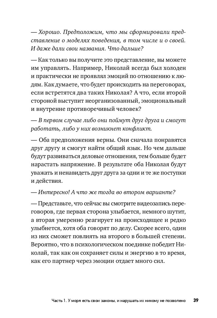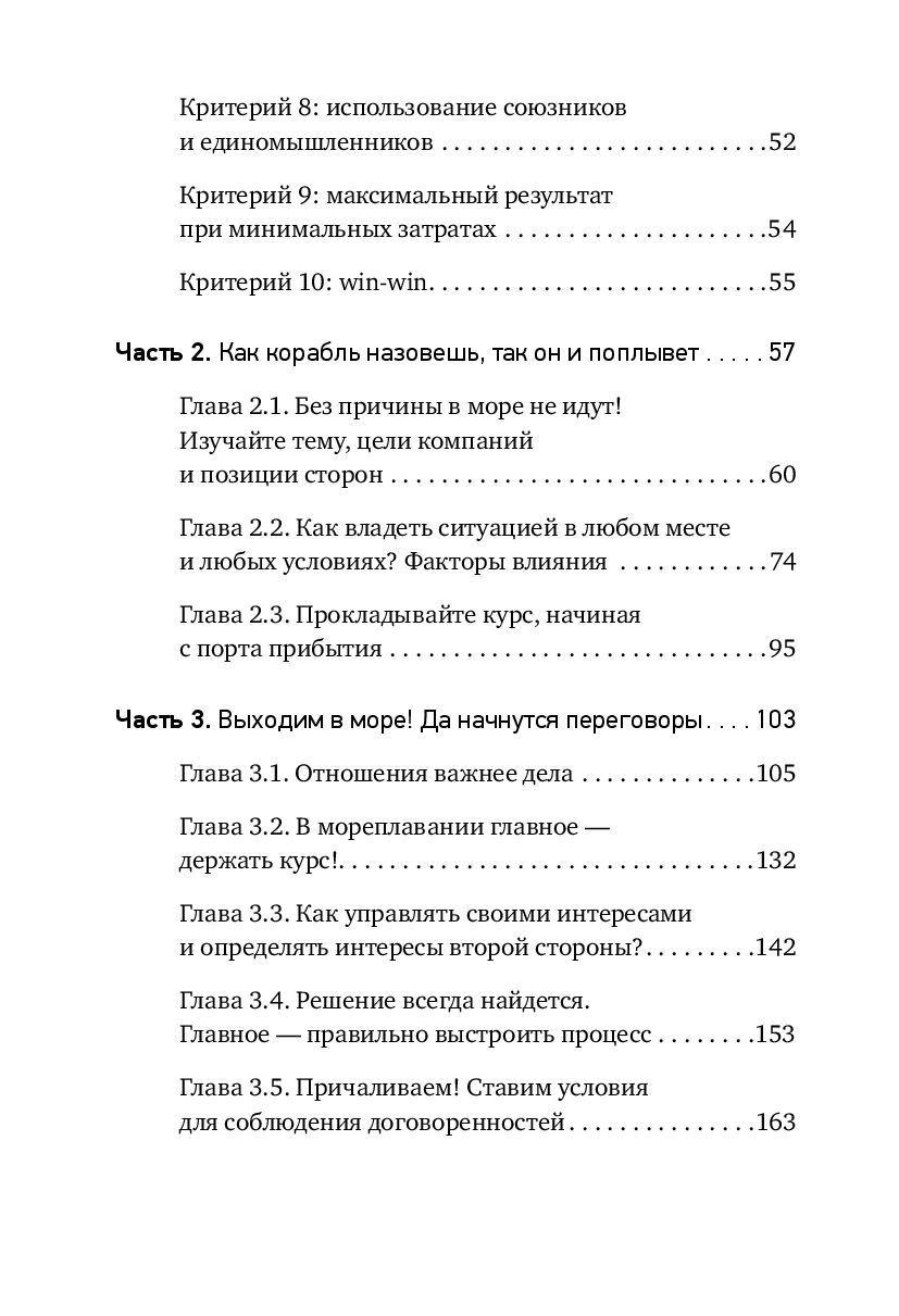 Данная книга – для всех, кто устал от взаимных претензий и манипуляций, для всех, кто не выносит неточностей, оплошностей и помарок в собственных переговорах, кто готов договариваться на разумных и действительно выгодных для обеих сторон условиях, для тех, кто созрел: стоять за штурвалом, управлять процессами переговоров и помогать в этом своим партнерам, добиваться взаимной выгоды даже в самых сложных или конфликтных ситуациях, сохраняя и приобретая: достоинство, выгоды, репутацию, долгосрочные партнерства.