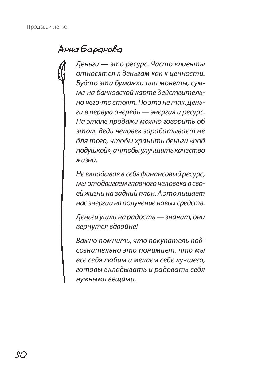 Наша книга поможет начинающим продавцам найти свой стиль продаж, настроиться на легкие продажи, замотивировать себя на успех и выйти на новый уровень в своей профессии. Книга наполнена не только теорией, но и примерами и простыми для восприятия схемами.