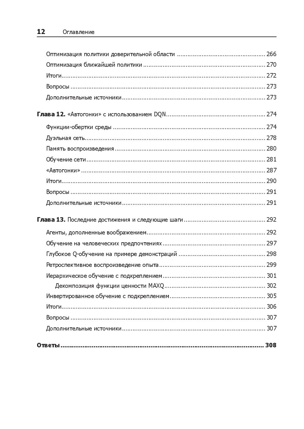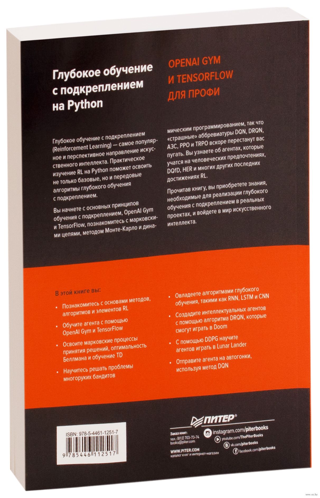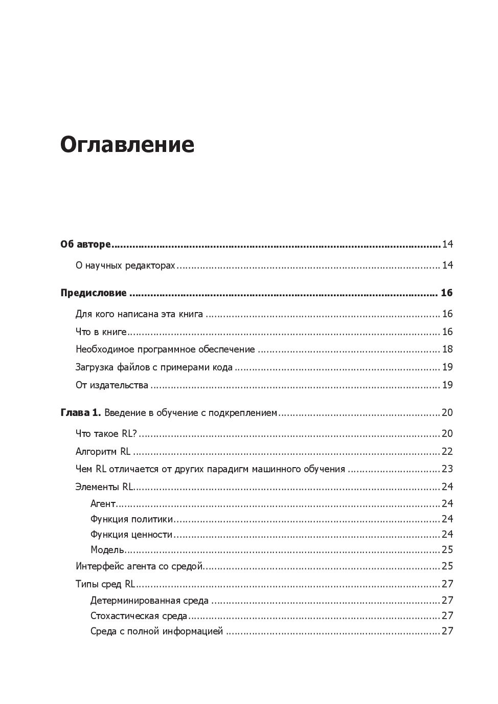 Вы начнете с основных принципов обучения с подкреплением, OpenAI Gym и TensorFlow, познакомьтесь с марковскими цепями, методом Монте-Карло и динамическим программированием, так что "страшные" аббревиатуры DQN, DRQN, A3C, PPO и TRPO вскоре перестанут вас пугать. Вы узнаете об агентах, которые учатся на человеческих предпочтениях, DQfD, HER и многих других последних достижениях RL.