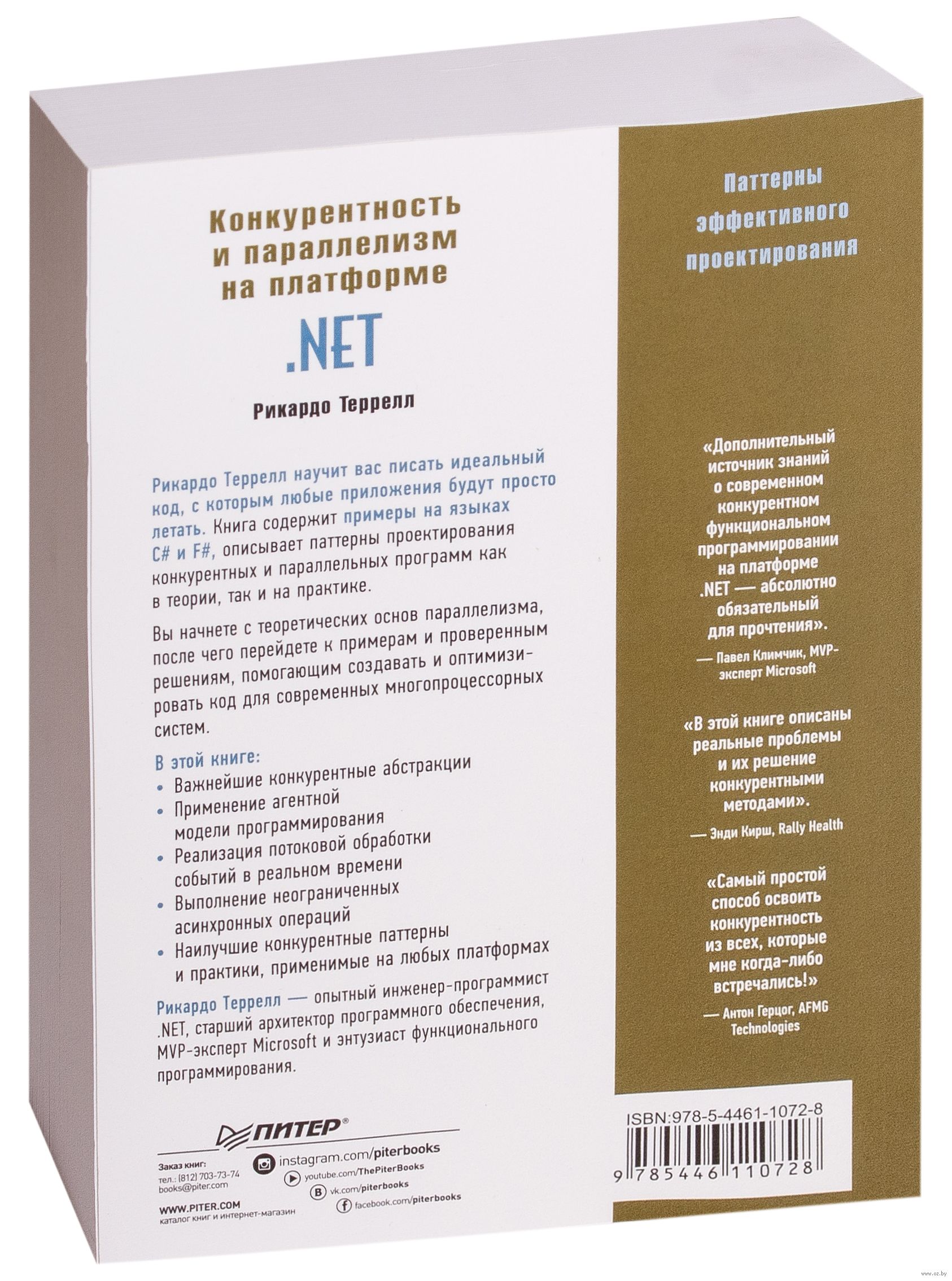 Рикардо Террелл научит вас писать идеальный код, с которым любые приложения будут просто летать. Книга содержит примеры на языках C# и F#, описывает паттерны проектирования конкурентных и параллельных программ как в теории, так и на практике. Вы начнете с теоретических основ параллелизма, после чего перейдете к примерам и проверенным решениям, помогающим создавать и оптимизировать код для современных многопроцессорных систем.