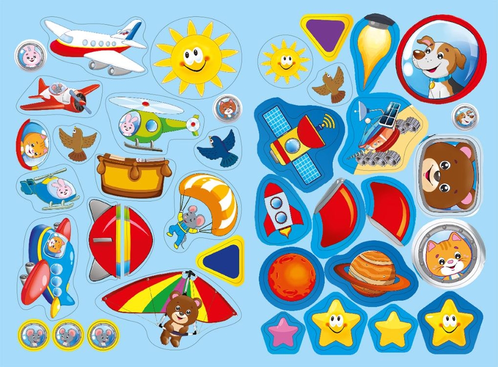 "Летим" – книга с одноразовыми наклейками из серии "Познавательные наклейки". Яркие картинки и интересные задания помогают развивать мелкую моторику, внимание и память малыша. Подбирая нужные наклейки, ребёнок учится различать цвета и детали.