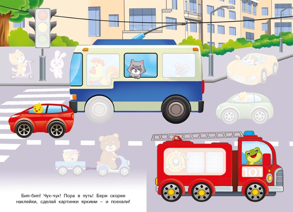 "Едем" – книга с одноразовыми наклейками из серии "Познавательные наклейки". Яркие картинки и интересные задания помогают развивать мелкую моторику, внимание и память малыша. Подбирая нужные наклейки, ребёнок учится различать цвета и детали.