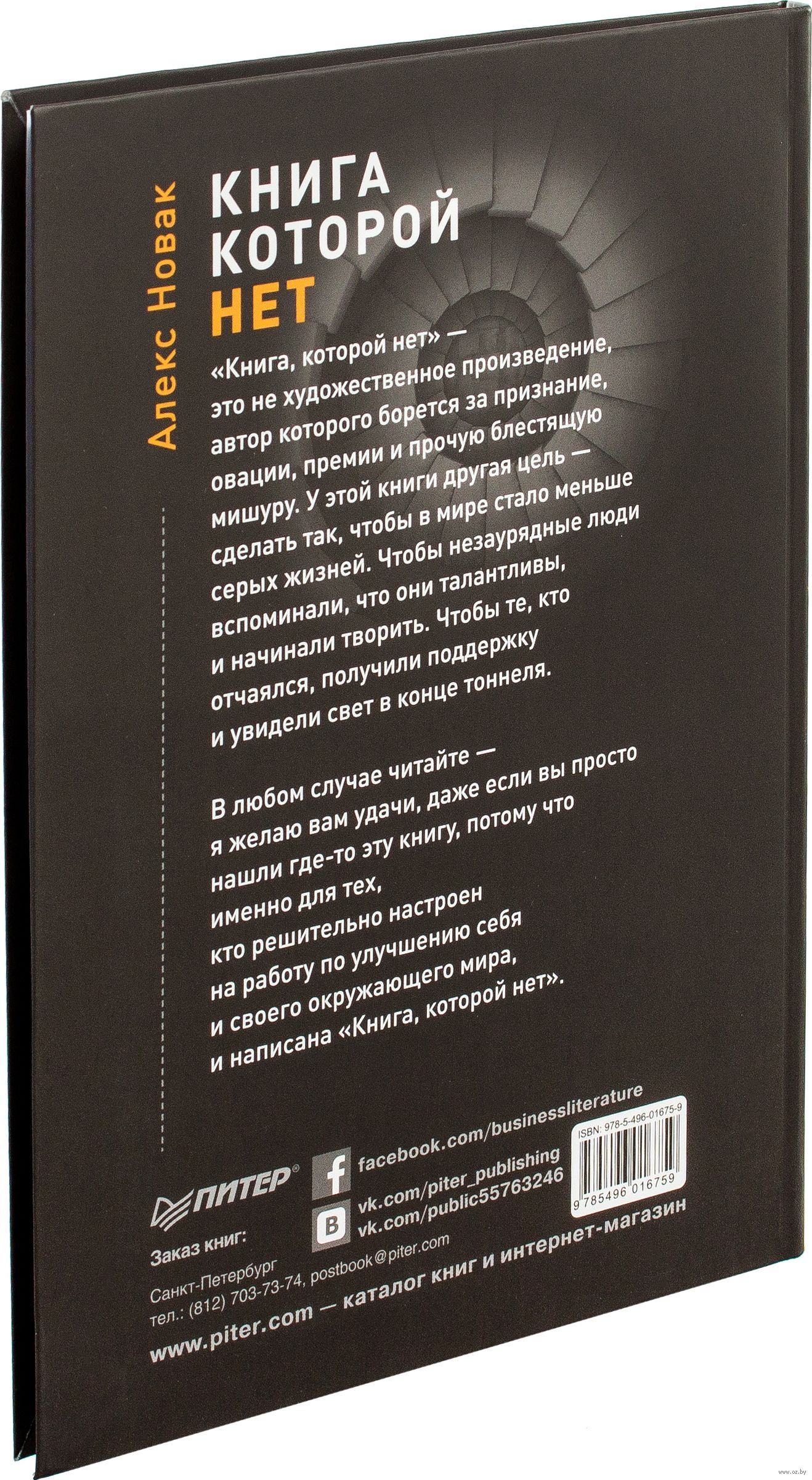 "Книга, которой нет" – это не художественное произведение, автор которого борется за признание, овации, премии и прочую блестящую мишуру. У этой книги другая цель – сделать так, чтобы в мире стало меньше серых жизней. Чтобы незаурядные люди вспоминали, что они талантливы, и начинали творить. Чтобы те, кто отчаялся, получили поддержку и увидели свет в конце тоннеля.