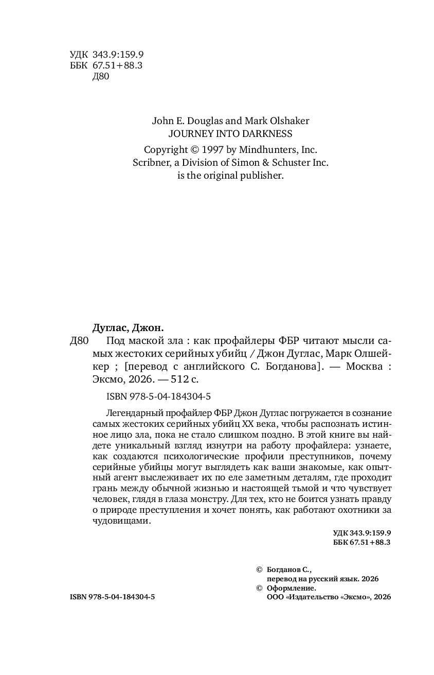 Ранее книга выходила под названием "Психологический портрет убийцы. Секретные методики ФБР".