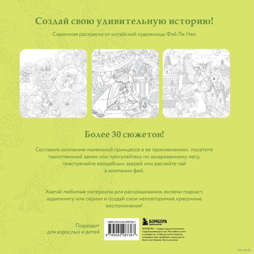 Погрузитесь в волшебный мир фантазии с этой очаровательной раскраской от китайской художницы Фэй Лэ Няо! Вас ждут более 30 волшебных сюжетов – от уютного чаепития в лесу до авантюрных путешествий по всему белому свету. Возьмите любимые материалы для творчества и создайте свою неповторимую историю!