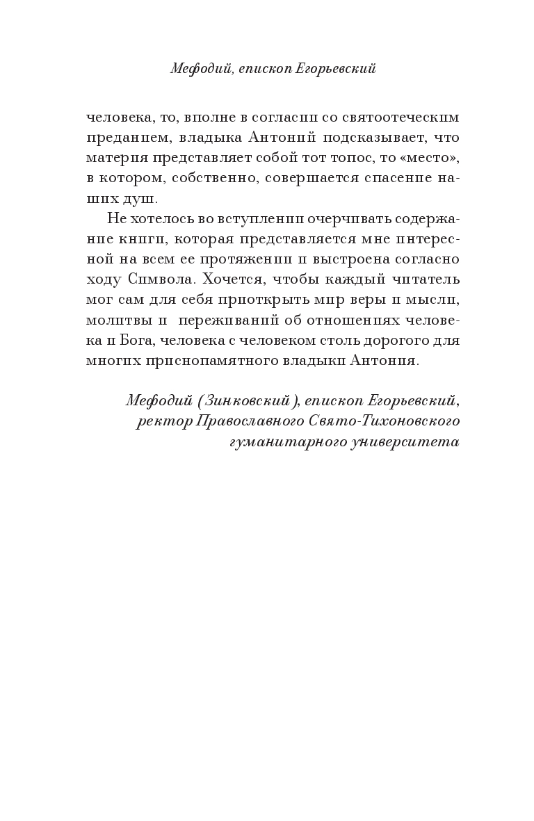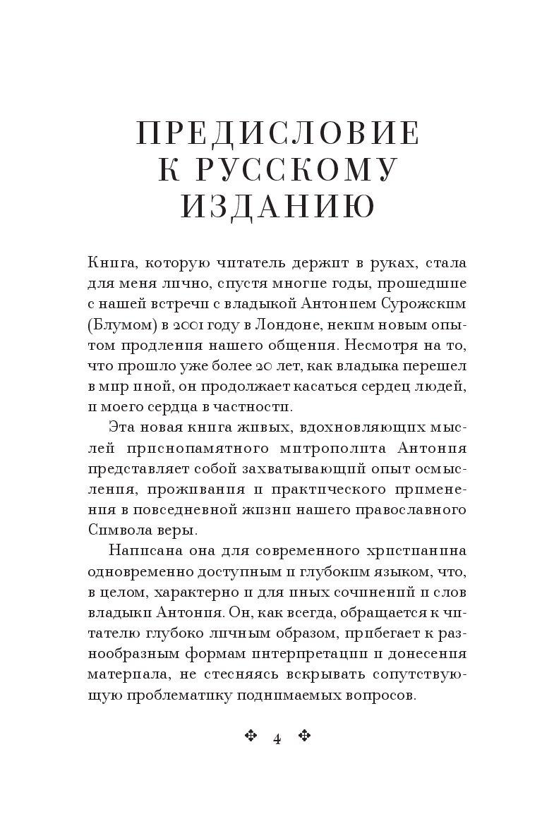 Строчка за строчкой владыка Антоний погружается в бездну смыслов исповедания веры, неизменно пропуская священные слова через свой собственный опыт предстояния перед Богом Живым.