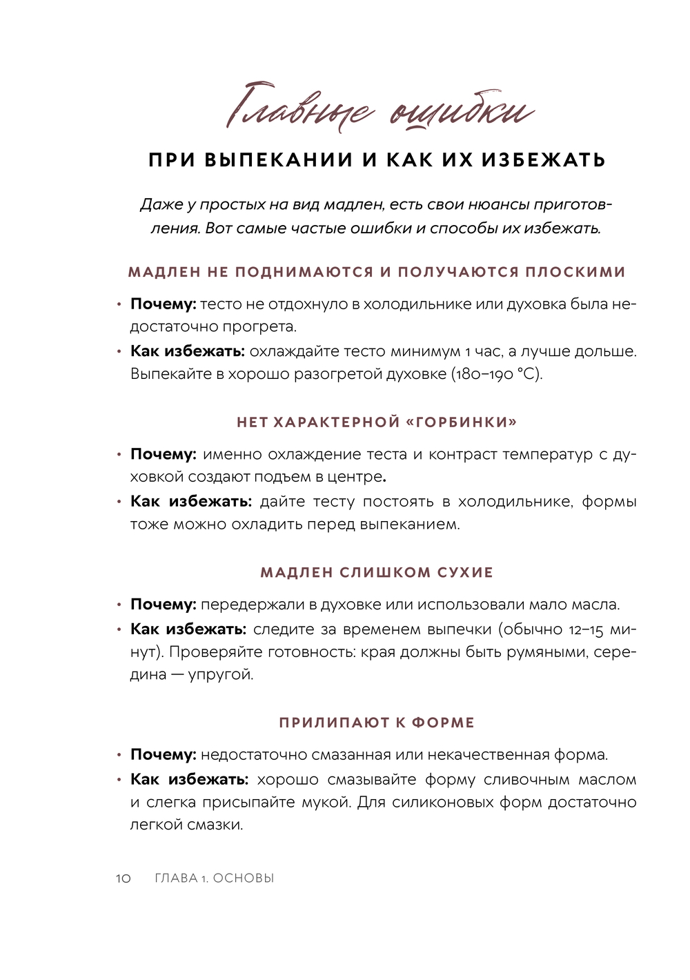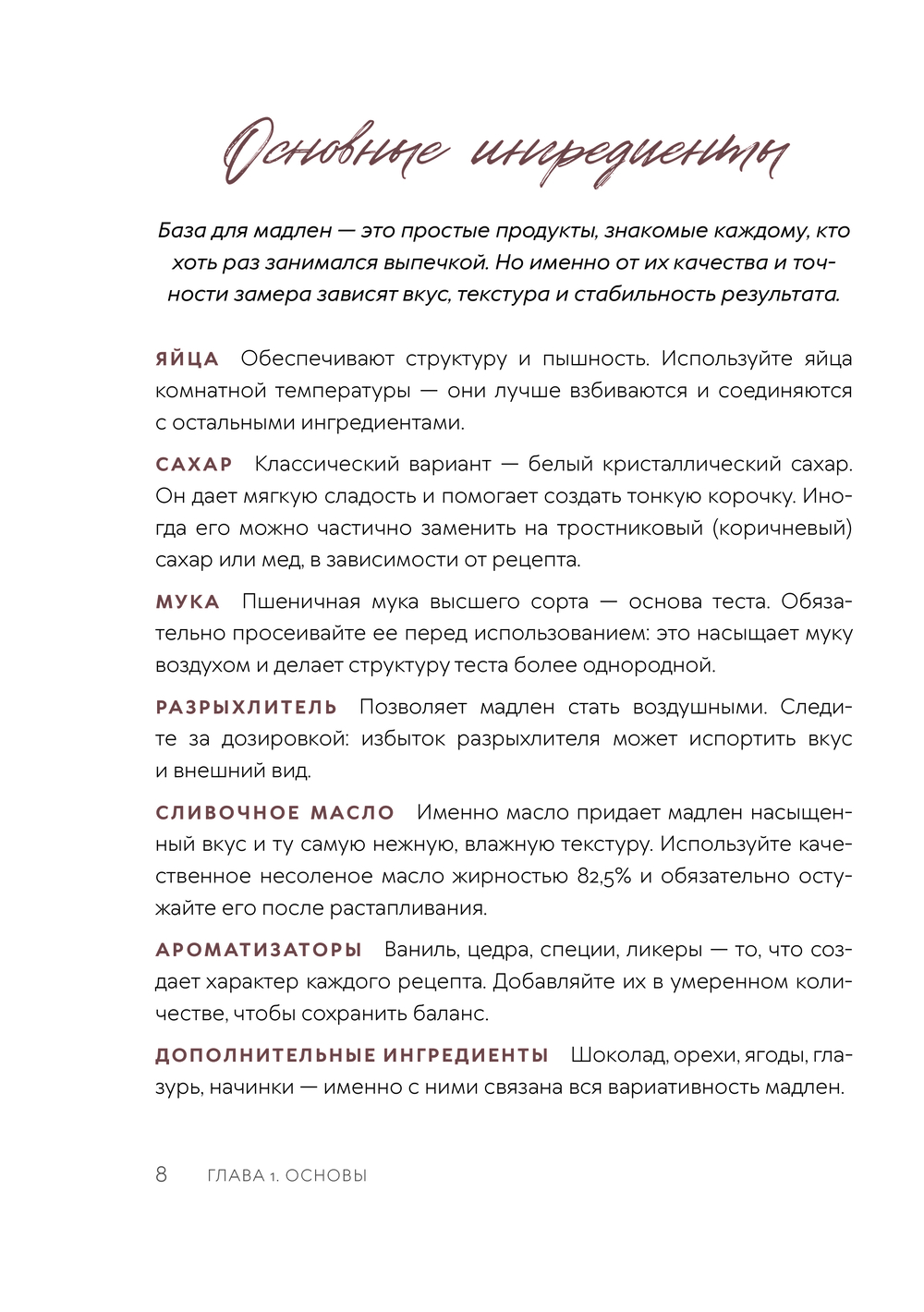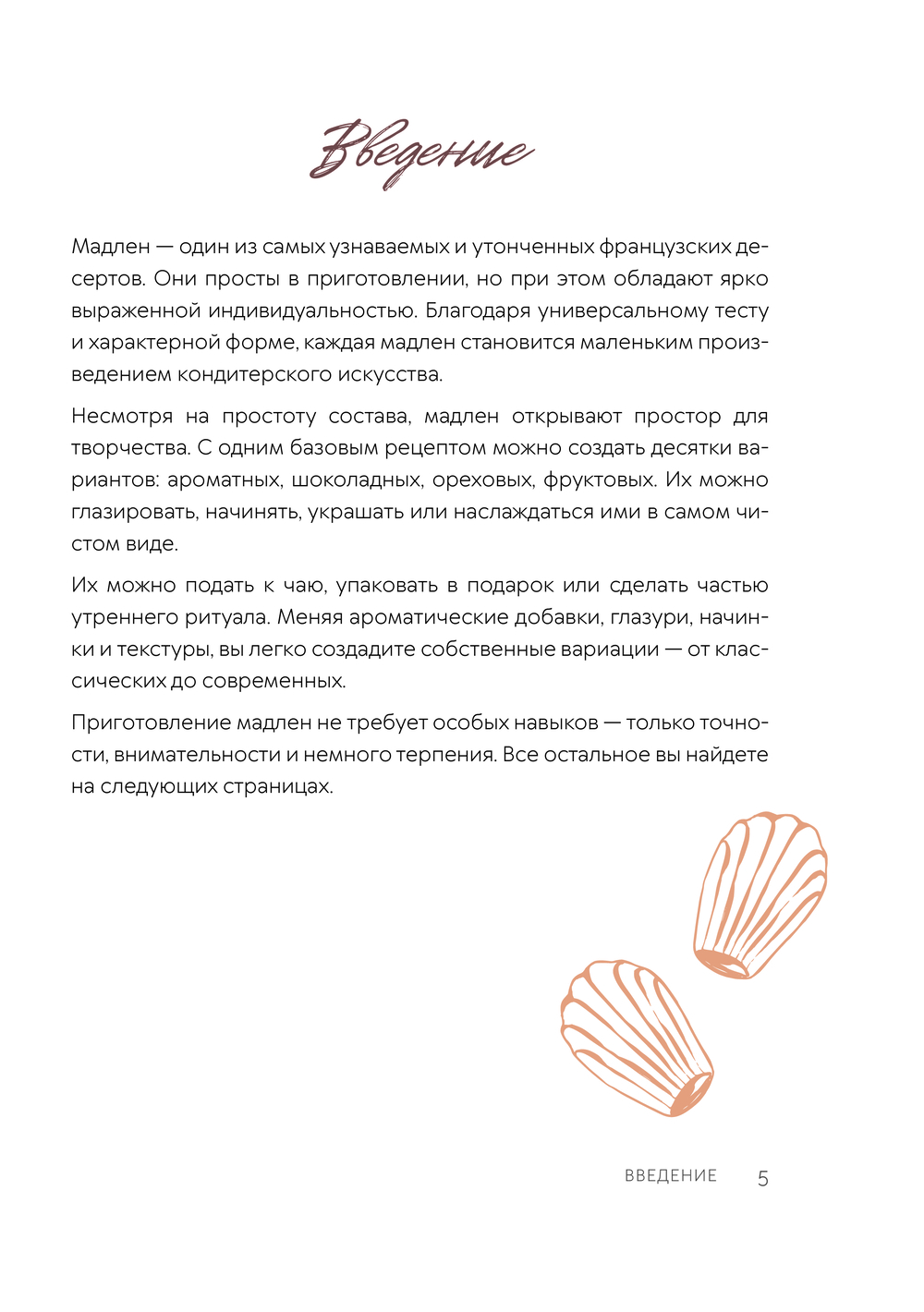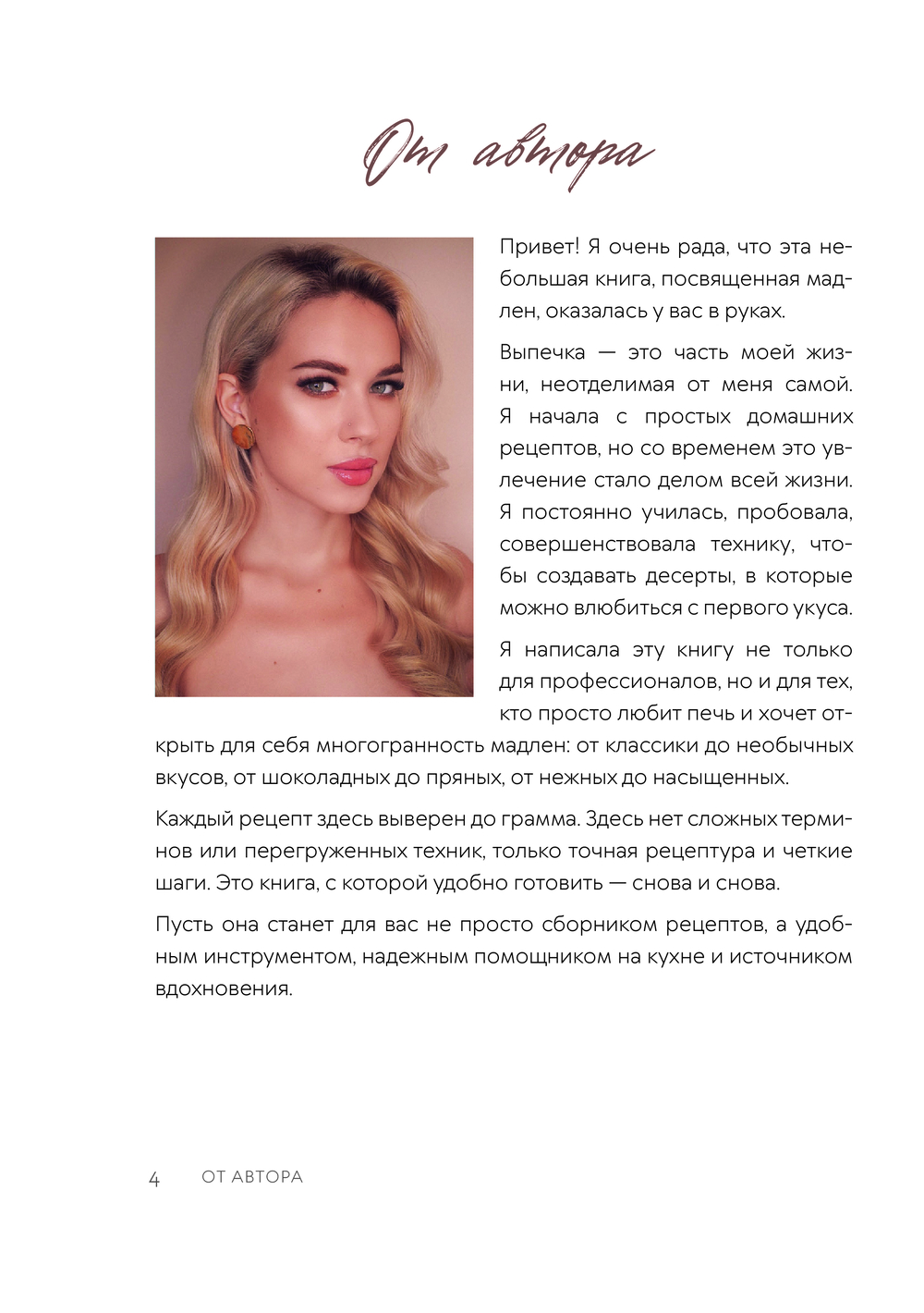 Мадлен – это маленькое французское чудо, которое наполняет дом ароматом ванили и спокойного утра. В своей книге Алина Васильева, кулинарный инфлюенсер (alvasileva) и домашний кондитер, показывает, что приготовить это классическое печенье гораздо проще, чем кажется. А кроме этого, познакомьтесь с множеством альтернативных и авторских вариантов десерта: с различными глазурями, начинками и дополнительными ингредиентами, которые меняют вкус и впечатление до неузнаваемости.