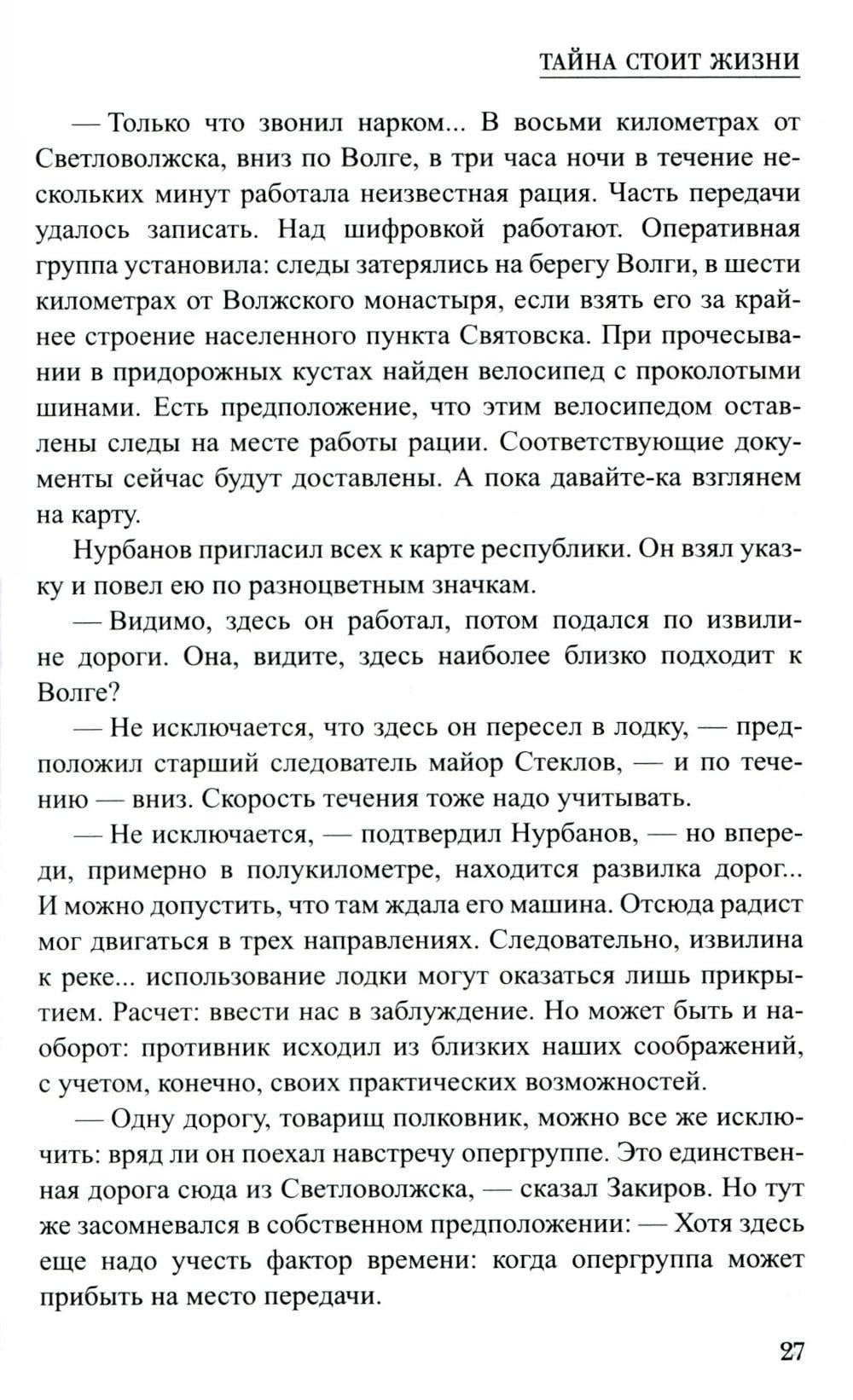 Действие книги разворачивается в конце 1930-х годов в Поволжье. Бандитское подполье активизируется в крупном городе Светловолжске. Неподалеку от него начинает работать таинственный радиопередатчик. Многие следы ведут в старинный Волжский монастырь. Молодым чекистам Ильдару Закирову и Александру Жукову предстоит раскрыть тайны прошлого и настоящего, часть которых сокрыта в мрачных подземных ходах.