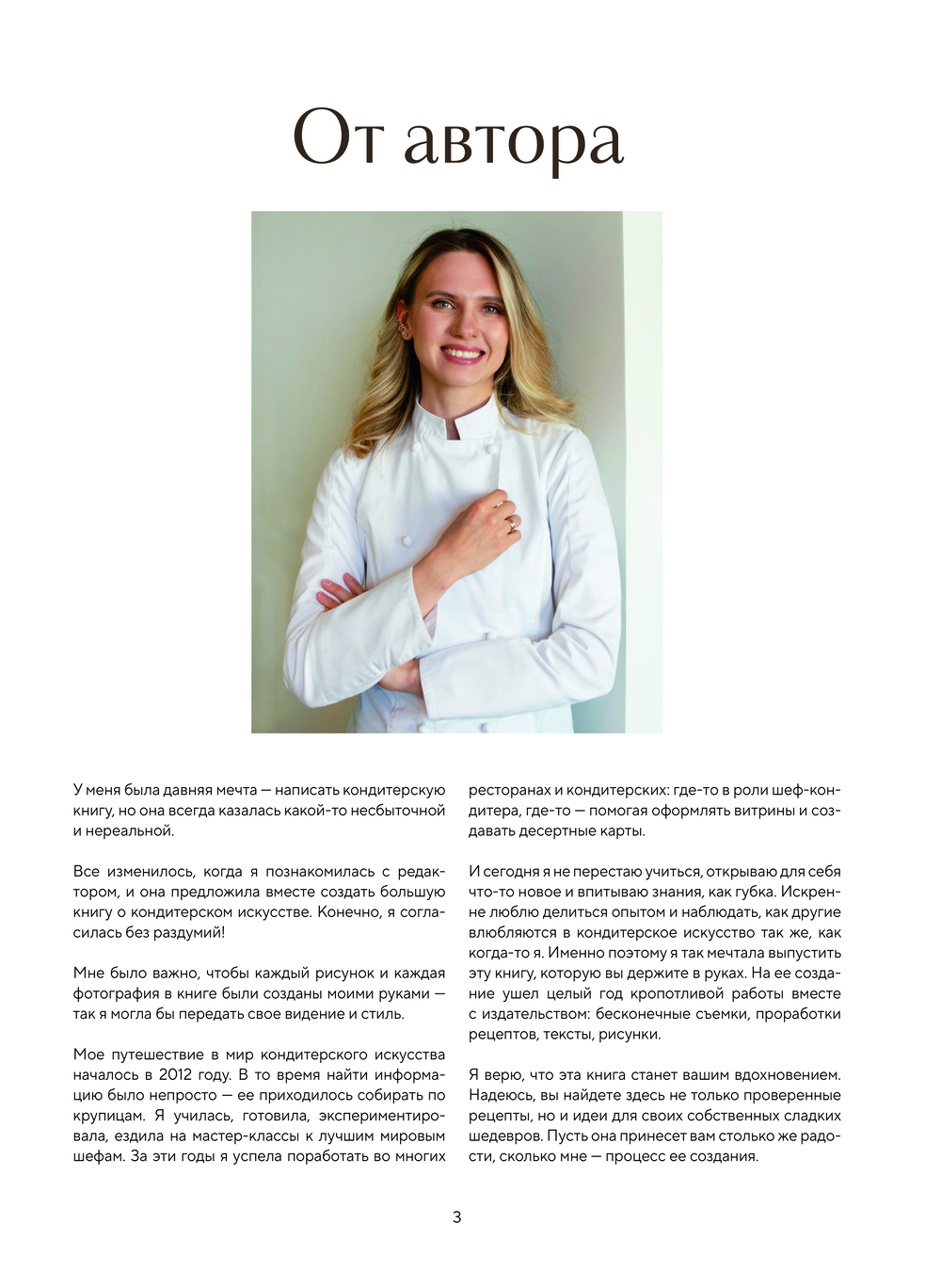 Эта книга – пошаговое руководство по современному кондитерскому искусству от шеф-кондитера Евгении Порхачевой, бренд-шефа сети La Poste и основателя онлайн-школы Patiseri.school. В книге собран многолетний профессиональный опыт, проверенные техники и авторские рецепты, позволяющие пройти путь от базовых принципов до создания изысканных витринных десертов. Художественное образование автора делает издание особенно выразительным – все иллюстрации и фотографии выполнены Евгенией, с тем же вкусом и вниманием к деталям, что и ее сладкие шедевры.