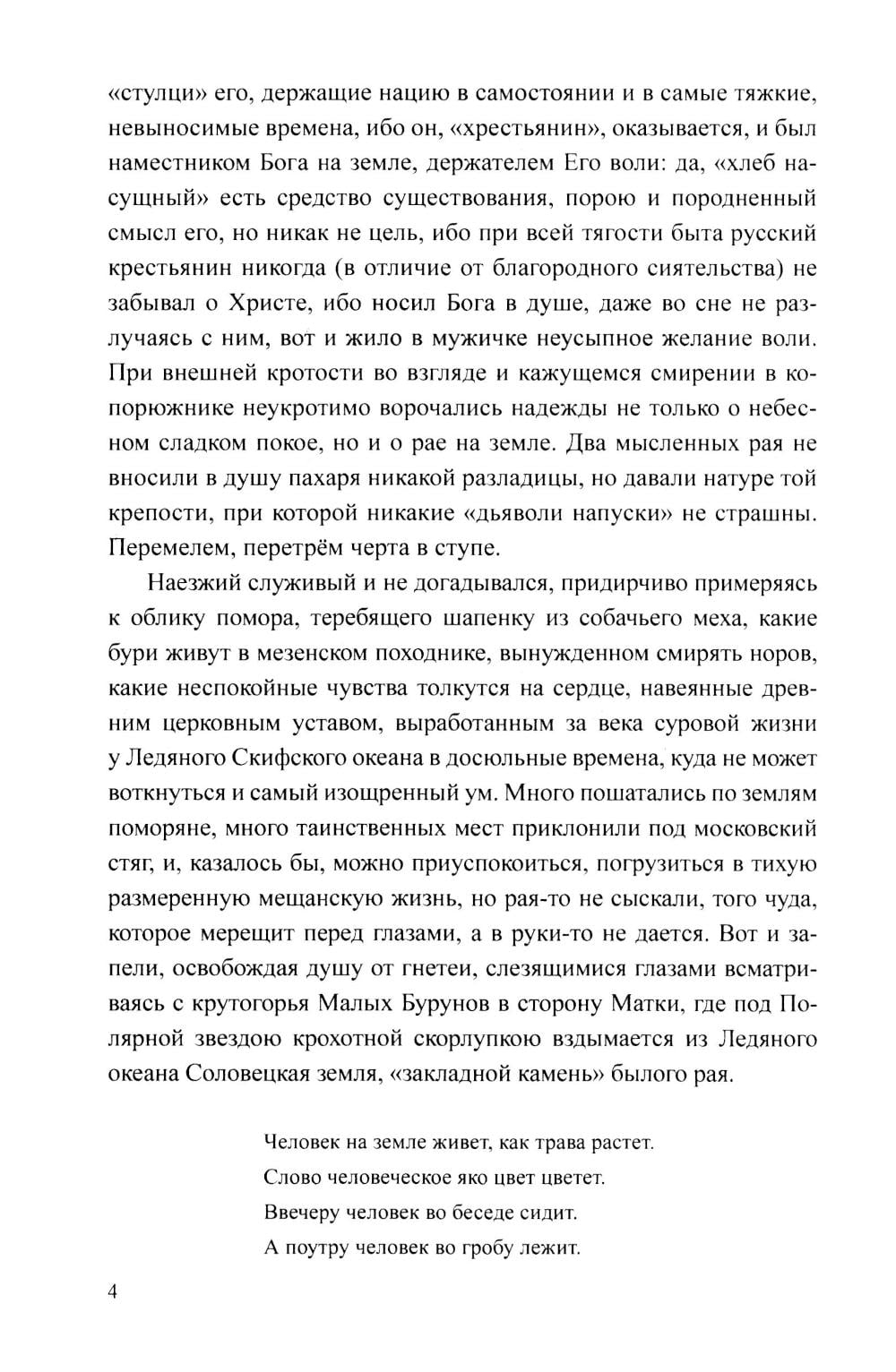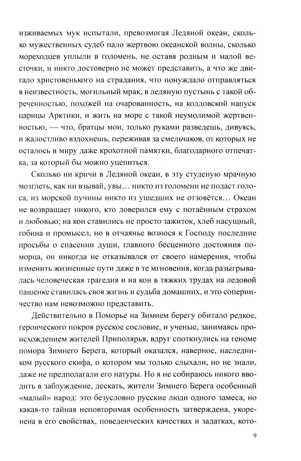 Автор в свойственной ему манере сказителя не только описывает жизнь поморов-промысловиков, хождение по ледяным северным морям исследователей-первопроходцев, но и на основе архивных документов размышляет о бытии всего народа российского.