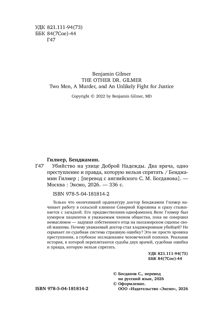 | Название в оригинале | THE OTHER DR. GILMER Two Men, A Murder, and An Unlikely Fight for Justice |