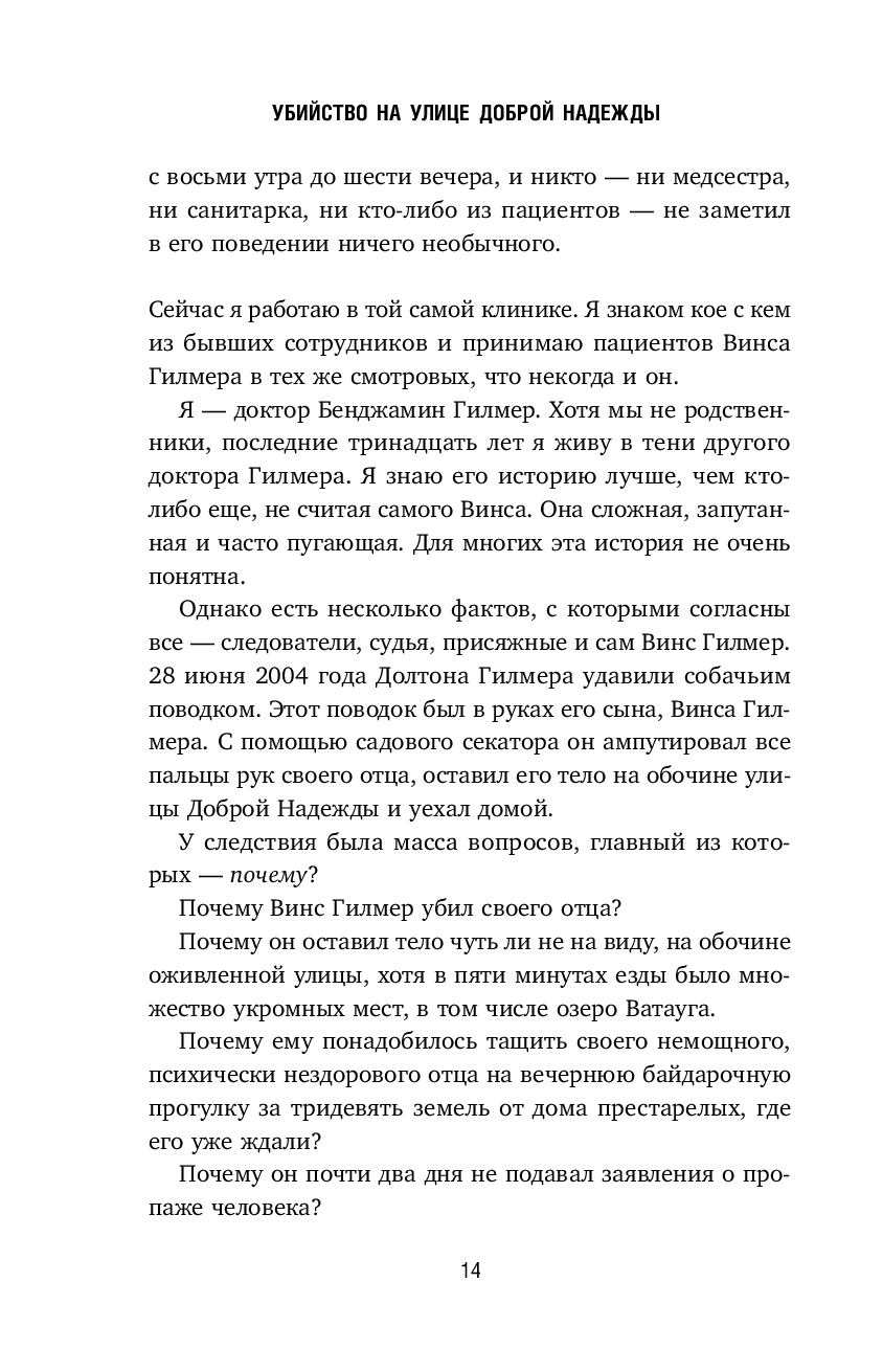 Только что окончивший ординатуру доктор Бенджамин Гилмер начинает работу в сельской клинике Северной Каролины и сразу сталкивается с загадкой. Его предшественник-однофамилец Винс Гилмер был кумиром пациентов и уважаемым членом общества, пока не совершил немыслимое – задушил собственного отца на пассажирском сиденье своей машины. Почему уважаемый доктор стал хладнокровным убийцей? Не скрывает ли судебная система страшную ошибку? Это не просто хроника преступления, а глубокое исследование человеческой психики. Реальная история, в которой переплетаются судьбы двух врачей, судебная ошибка и правда, которую нельзя спрятать.