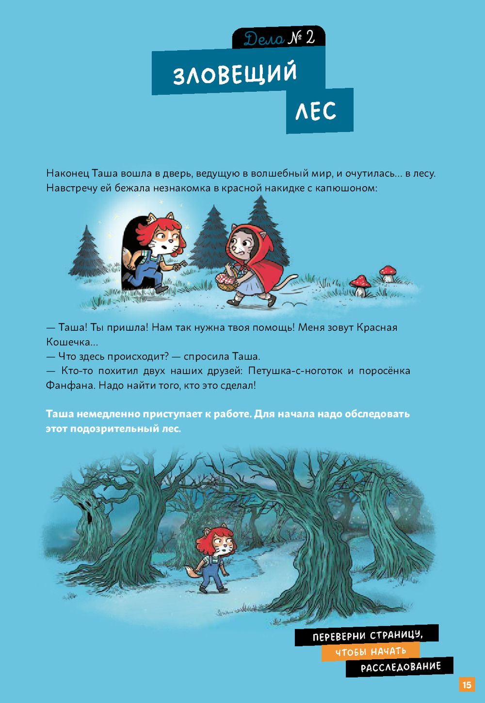 Детектив Таша Тунцова отправляется в страну сказок, чтобы помочь её жителям спасти детей из лап злой колдуньи, найти похищенного джина и расколдовать спящего короля. Помогите Таше открыть проход в мир сказок и распутать все происшествия!
