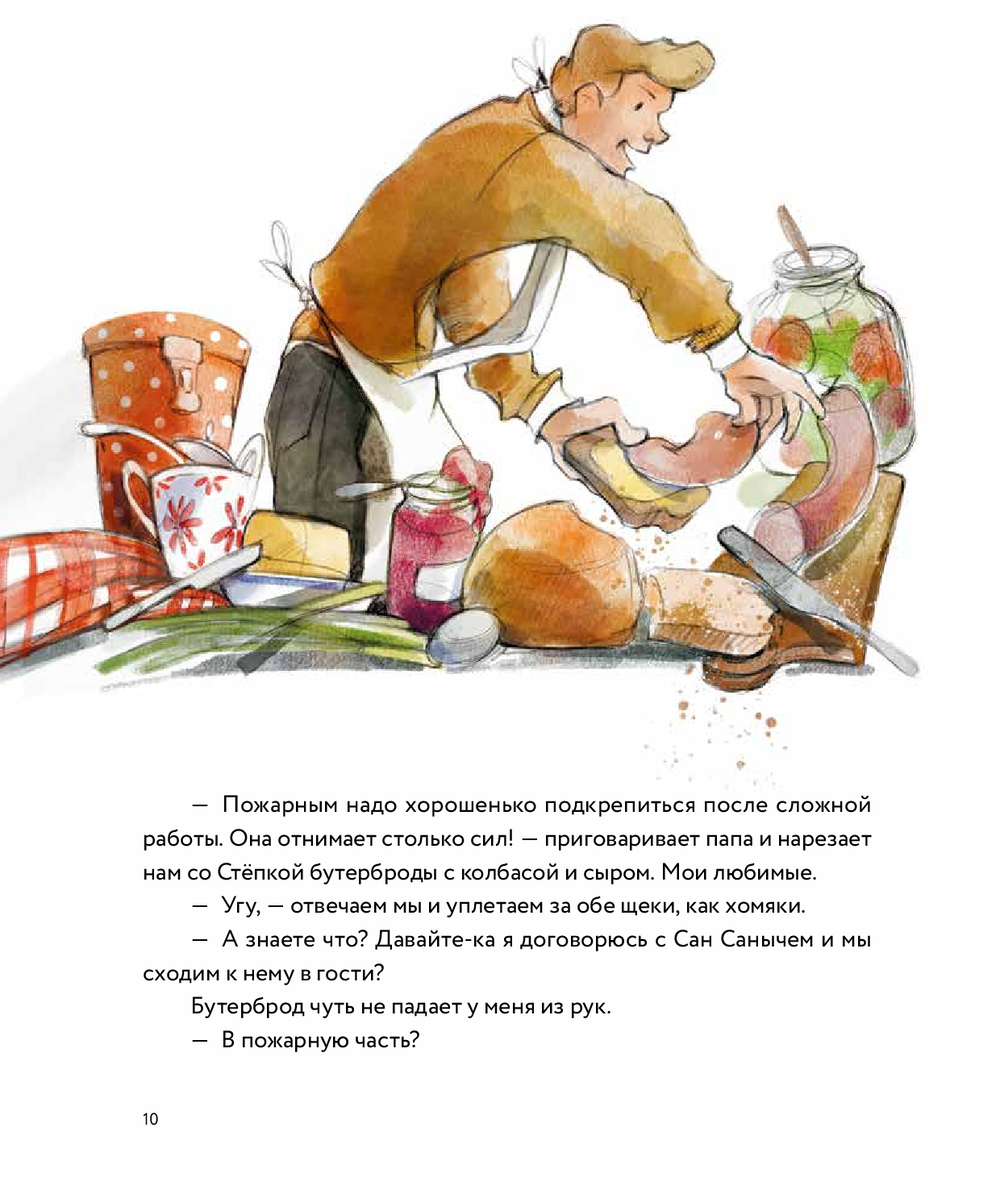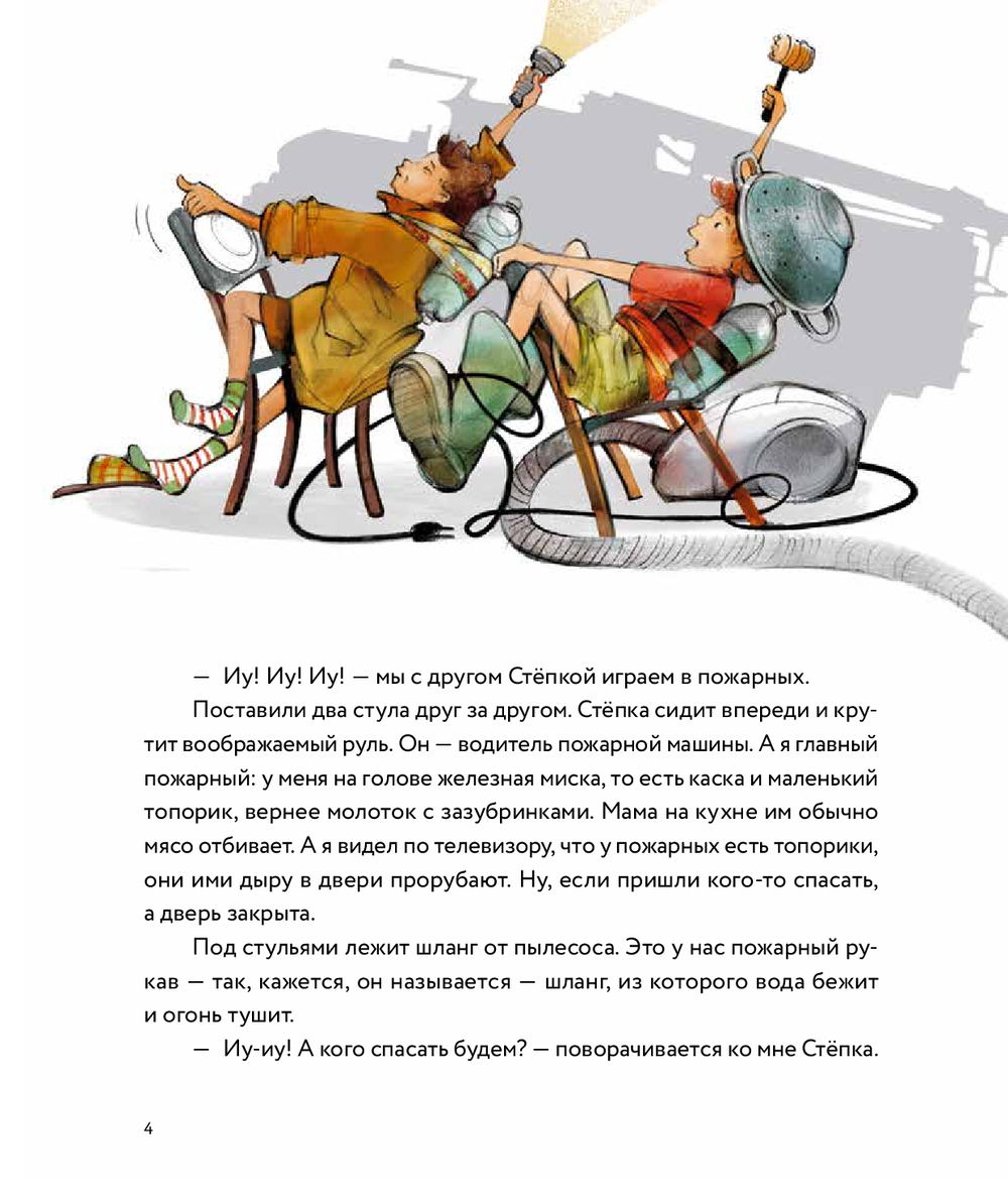 Иу! Иу! Иу! Яша и его друг Стёпка – самые смелые пожарные во дворе! Сегодня они спасают кота, а завтра – отправятся в настоящую пожарную часть. Там их ждут огромные красные машины, шланги длиной с целый дом и герой Сан Саныч – начальник пожарной охраны. Вместе с ребятами ты узнаешь, как устроена пожарная часть, чем занимается диспетчер, почему форму надевают за 21 секунду и зачем сушат рукава на каланче.