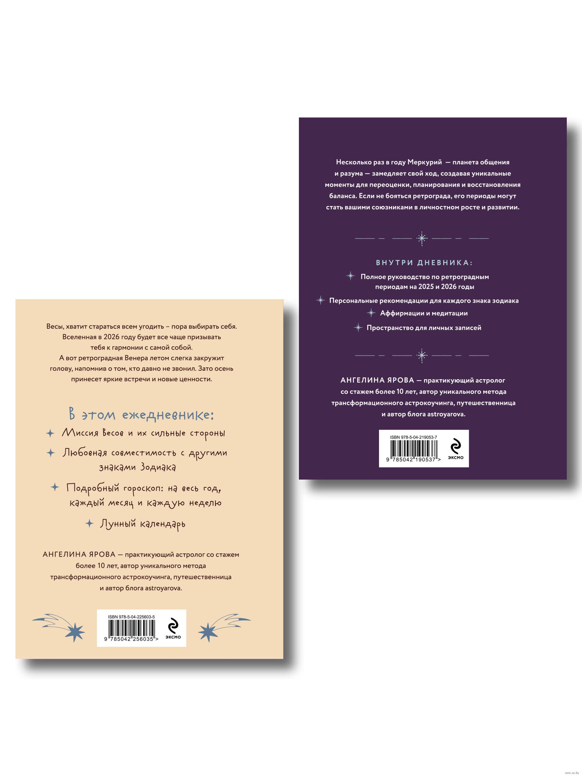 Этот дневник трепетно составлен профессиональным астрологом, чтобы облегчить твой путь. Внутри полное руководство по ретроградным периодам на 2025 и 2026 годы – будь на шаг впереди перемен. А также персональные рекомендации для каждого знака зодиака – адаптируй свою энергию к космическим ритмам. И, конечно медитации для внутренней гармонии и спокойствия. Фиксируй важные мысли и наблюдения.