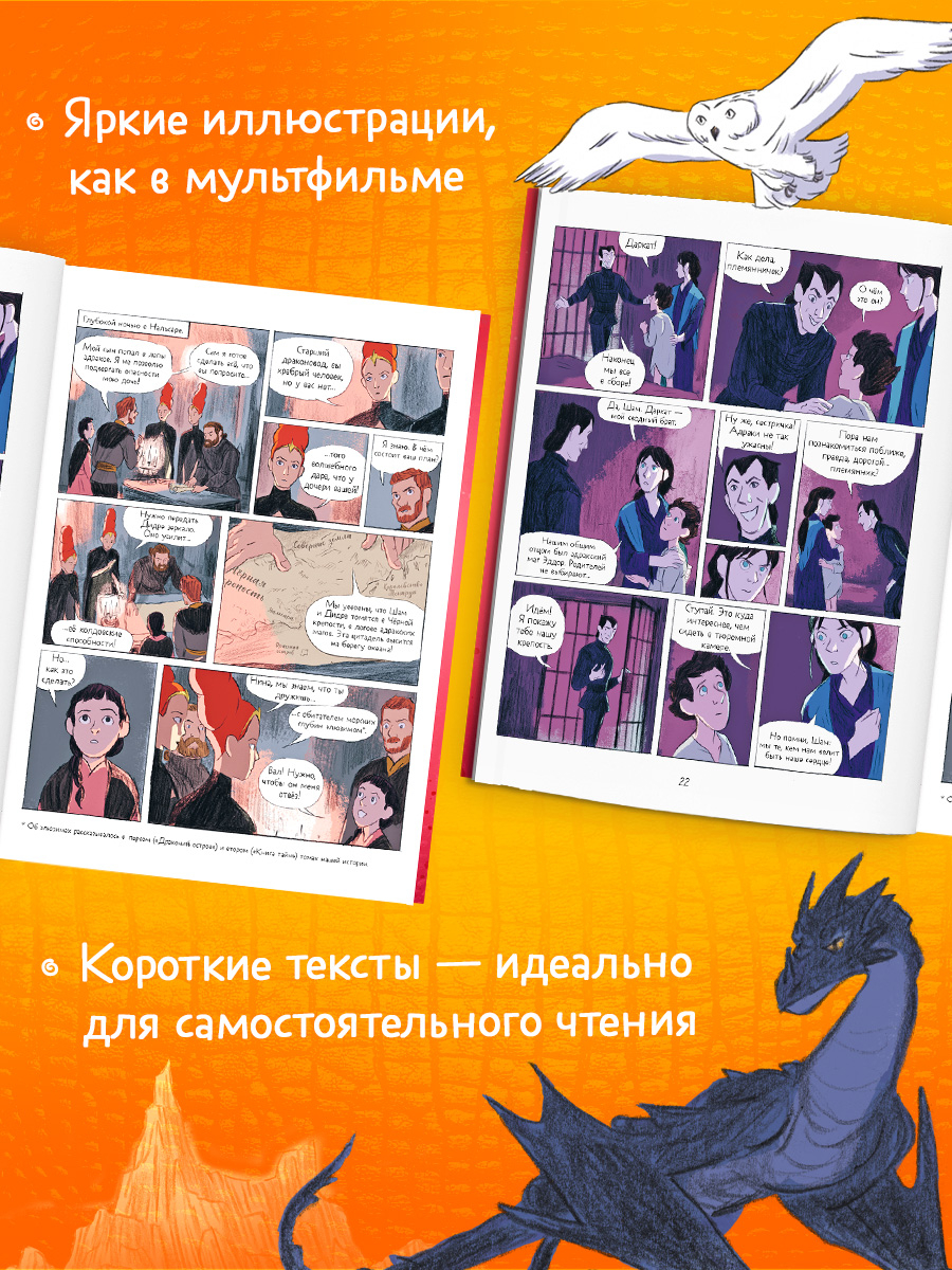 "Драконы Нальсары. Черная крепость" – третья книга комикса о драконах, магии, дружбе и семье. Красивые динамичные иллюстрации как в мультфильме и небольшие фрагменты текста – идеально для первого самостоятельного чтения.