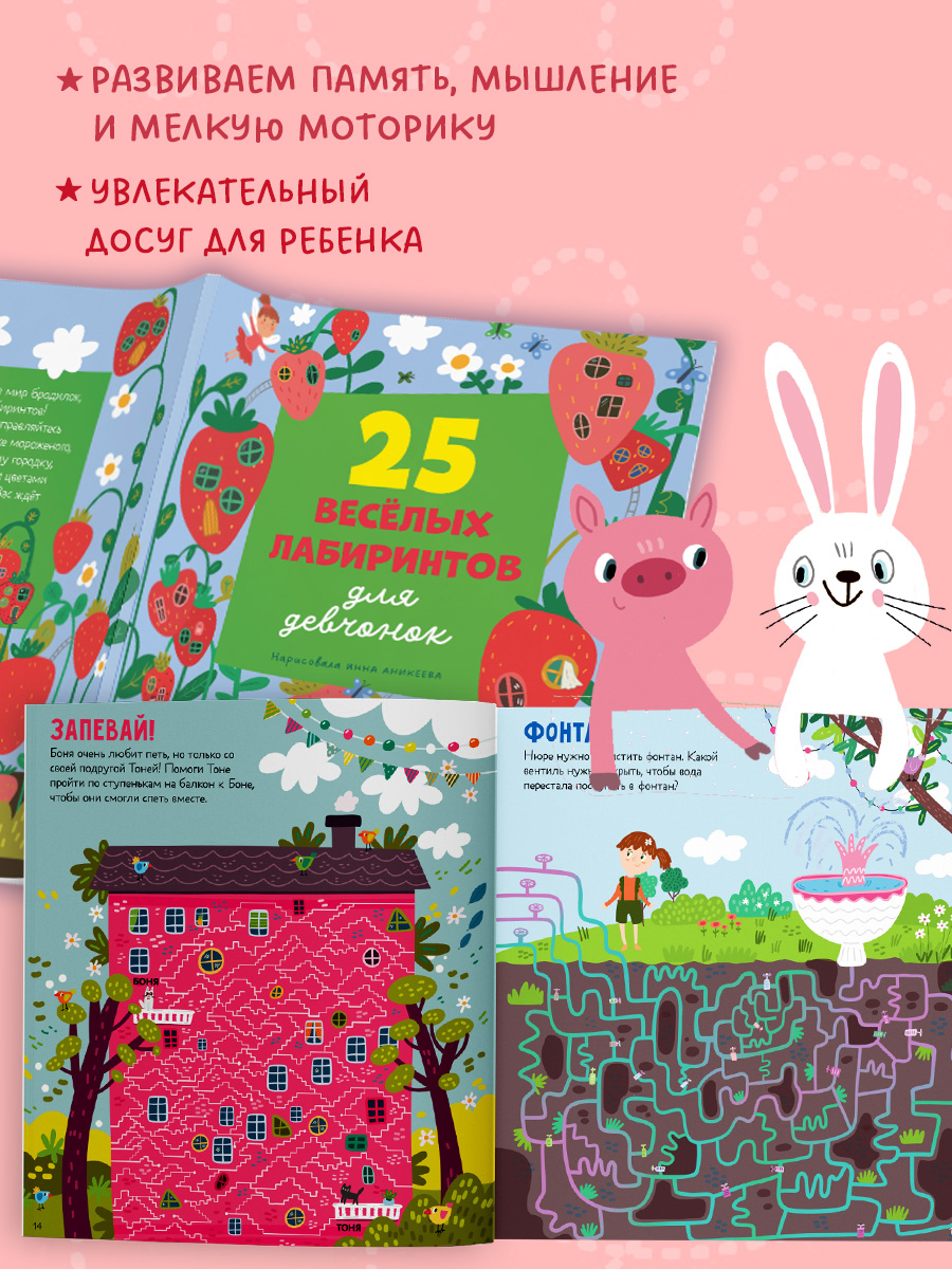 "25 лабиринтов для девчонок" – увлекательная книга ходилок и бродилок, которая надолго займет ребенка и поможет развить логическое мышление и мелкую моторику.