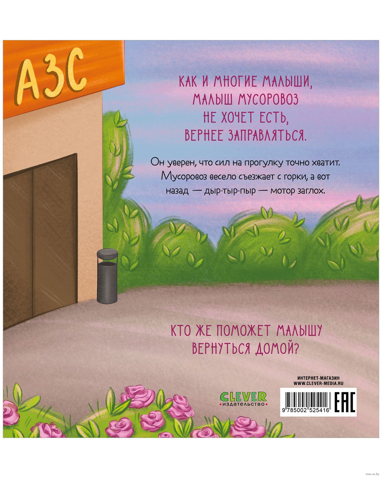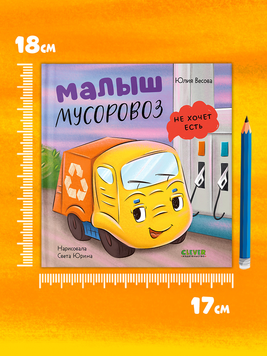 "Малыш мусоровоз не хочет есть" – добрая история в стихах, которая покажет ребенку, как важно хорошо и вовремя питаться, и познакомит с разными видами "еды" для машин – топлива. Как и многие малыши, мусоровоз не хочет есть, вернее заправляться. Он уверен, что сил на прогулку точно хватит. Мусоровоз весело съезжает с горки, а вот назад – дыр-тыр-пыр – мотор заглох. Кто же поможет малышу вернуться домой?