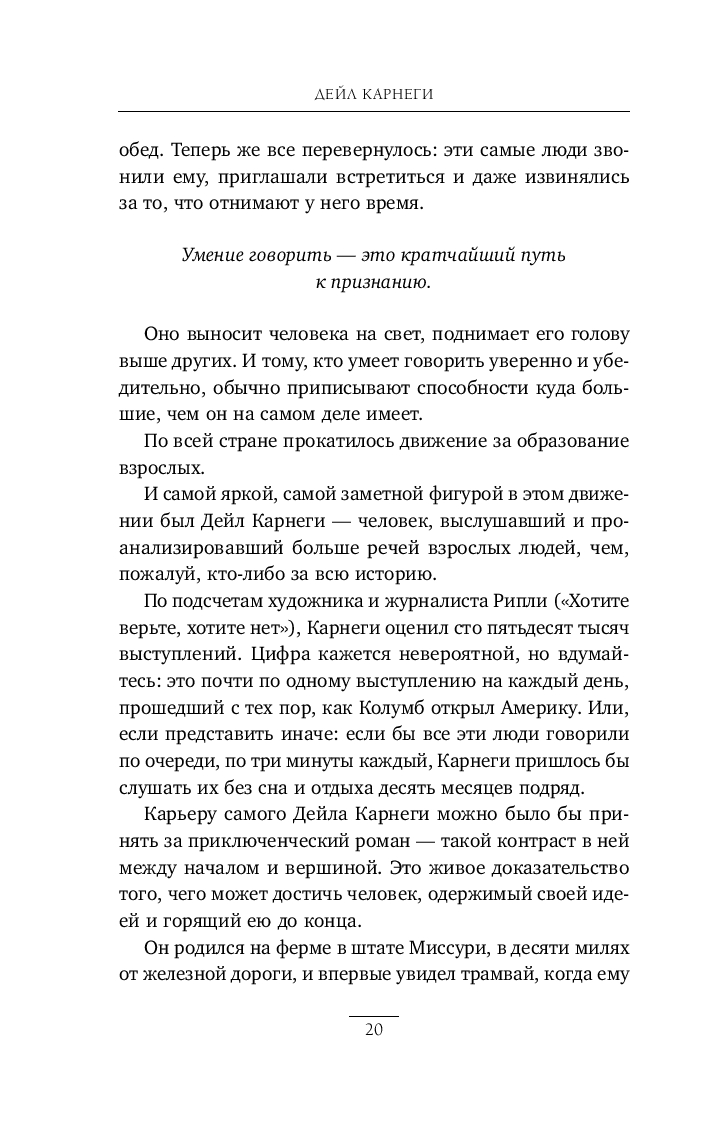 Дейл Карнеги – один из самых влиятельных мотивационных спикеров XX века, автор легендарных книг по личной эффективности и коммуникации, переведенных более чем на 30 языков и изданных общим тиражом свыше 100 миллионов экземпляров.