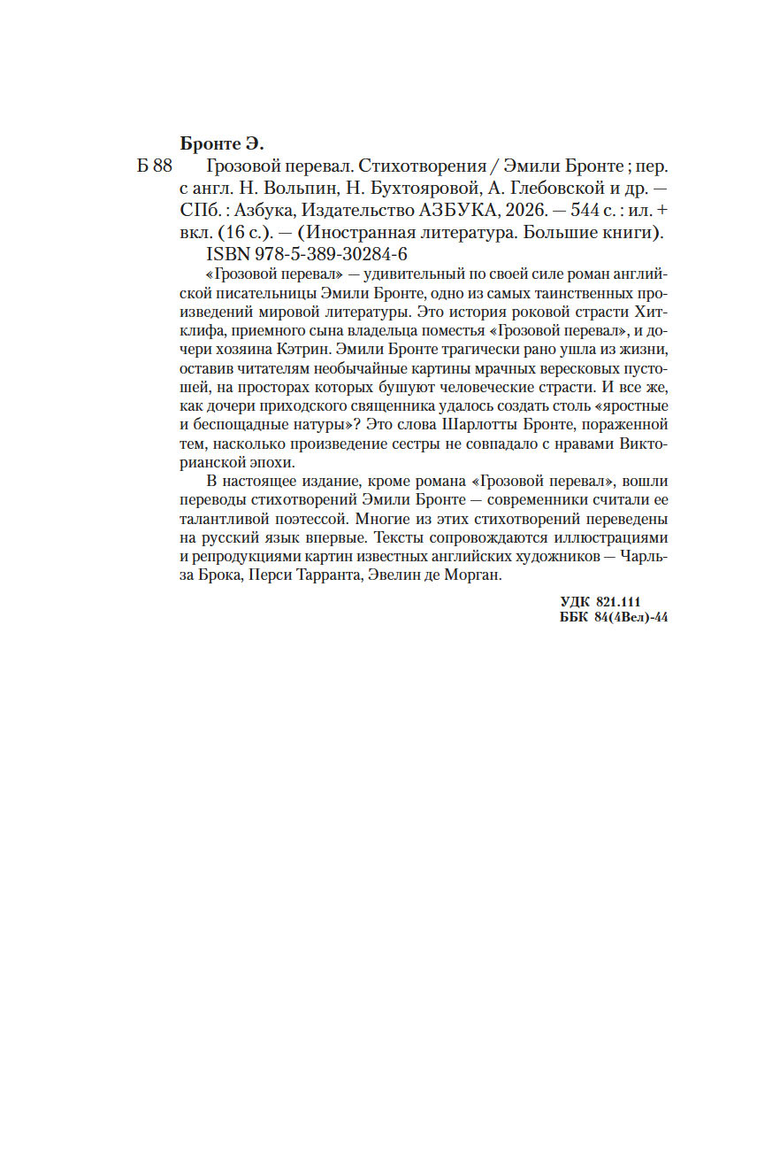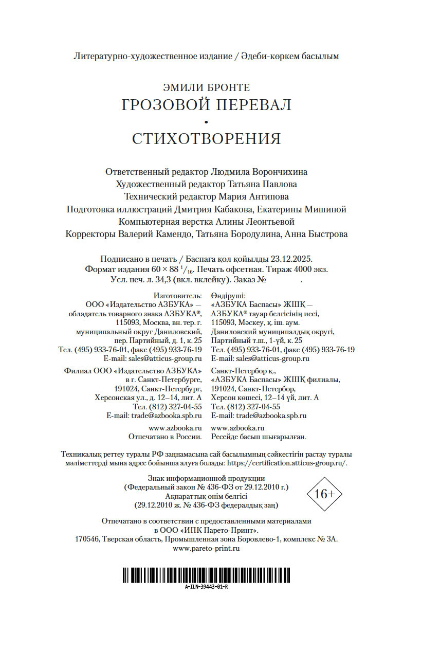 В настоящее издание, кроме романа "Грозовой перевал", вошли переводы стихотворений Эмили Бронте – современники считали ее талантливой поэтессой. Многие из этих стихотворений переведены на русский язык впервые. Тексты сопровождаются иллюстрациями и репродукциями картин известных английских художников – Чарльза Брока, Перси Тарранта, Эвелин де Морган.