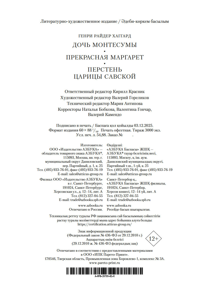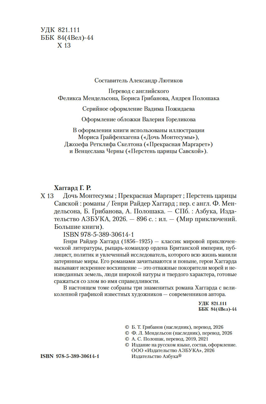 В настоящем томе собраны три знаменитых романа Хаггарда с великолепной графикой известных художников – современников автора.