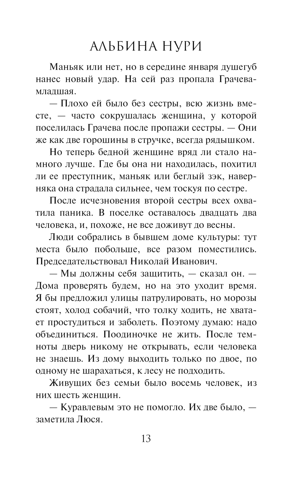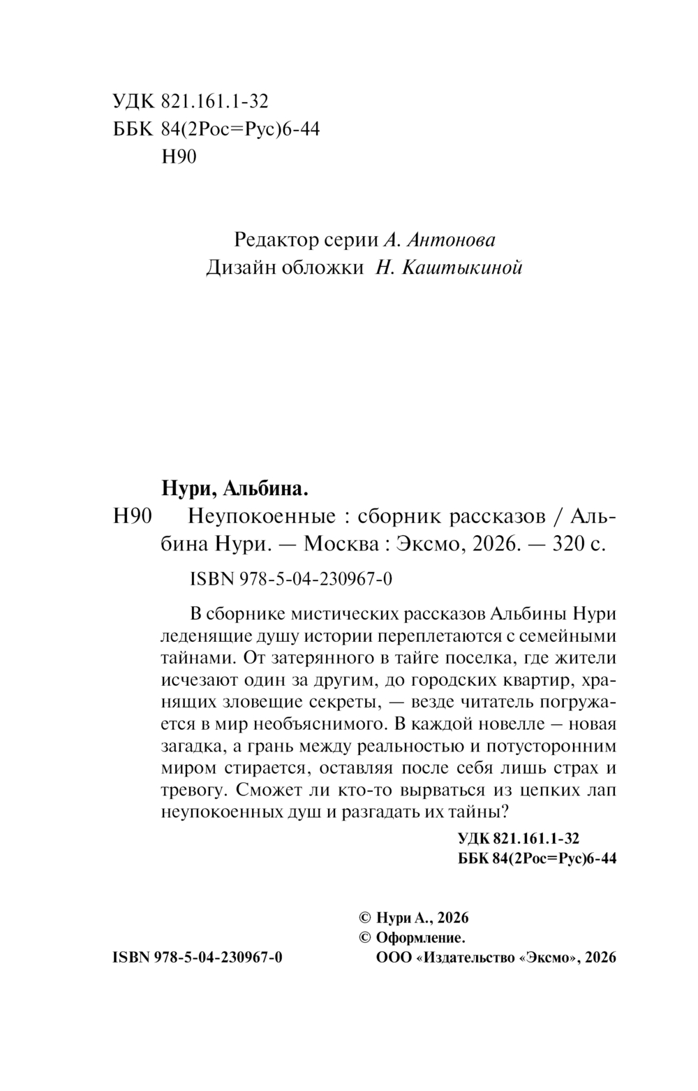 В сборнике мистических рассказов Альбины Нури леденящие душу истории переплетаются с семейными тайнами. От затерянного в тайге поселка, где жители исчезают один за другим, до городских квартир, хранящих зловещие секреты, – везде читатель погружается в мир необъяснимого. В каждой новелле – новая загадка, а грань между реальностью и потусторонним миром стирается, оставляя после себя лишь страх и тревогу. Сможет ли кто-то вырваться из цепких лап неупокоенных душ и разгадать их тайны?