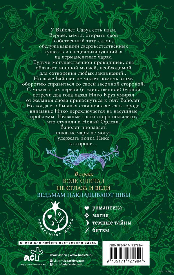 У Вайолет Савуа есть план. Вернее, мечта: открыть свой собственный тату-салон, обслуживающий сверхъестественных существ и специализирующийся на перманентных чарах. Будучи могущественной провидицей, она обладает мощной магией, необходимой для сотворения любых заклинаний... Но даже Вайолет не может помочь этому оборотню справиться со своей звериной стороной. С момента их первой (и единственной) бурной встречи два года назад Нико Круз умирал от желания снова прикоснуться к телу Вайолет. Но когда его бывшая стая появляется в городе, внимание Нико переключается на насущные проблемы. Незваные гости скоро пожалеют, что ступили в Новый Орлеан. Вайолет пропадает, никакие чары не могут удержать волка Нико в стороне…