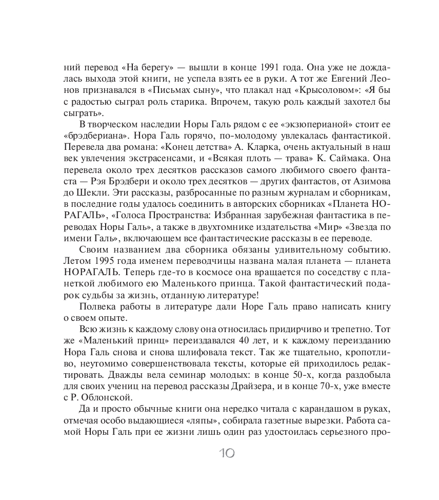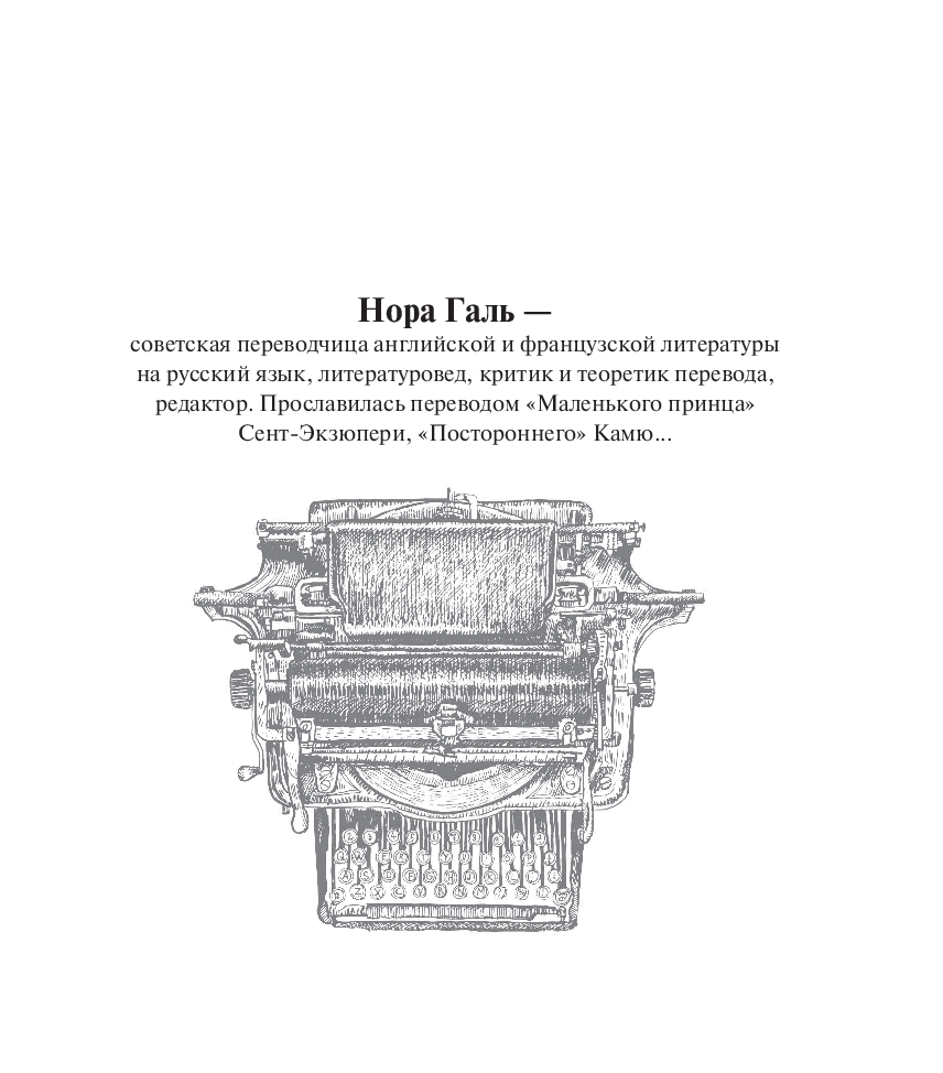 Нора Галь – выдающийся переводчик и литературный критик, передавшая на русском голоса Рэя Брэдбери, Антуана де Сент-Экзюпери, Теодора Драйзера и многих других авторов. Ее работы стали образцом того, как перевод может быть не подражанием, а сотворчеством.