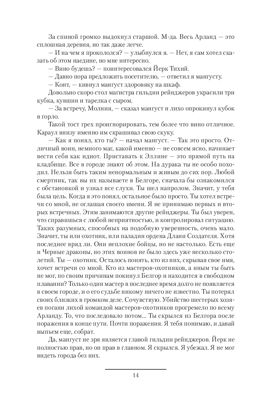 Эффект смены имени возымел действие: охотника Влада Молнию, рейнджера Далва Шутника и вольного барона Влада эл Стока никто не считает за одно и то же лицо. Кроме "ткача", от которого не скроешься, некому в Арланде догадаться об истинном положении вещей: правители разных королевств, главы орденов, клирики – все воспринимают Влада лишь по одной из его ипостасей. Собственно, именно это и бережет попаданца от неминуемой расправы, ибо враги его лишь множатся. Но Владу всего этого мало. Теперь он непременно хочет сделаться… графом эл Артуа. На сем нелегком пути его могут поддержать – и конечно, поддержат! – не три, а четыре короля! Но чем ты выше забираешься по крутой иерархической лестнице, тем… Да, больнее падать, это понятно, зато общая картина мира открывает новые и новые детали, могущие перевернуть весь ее смысл…