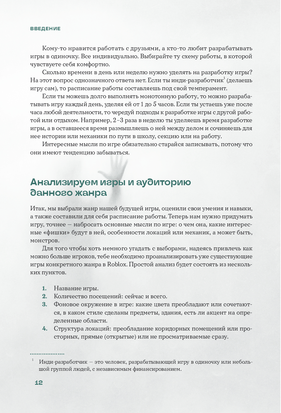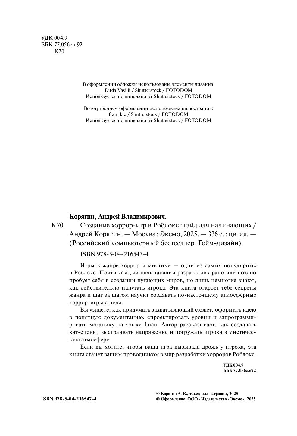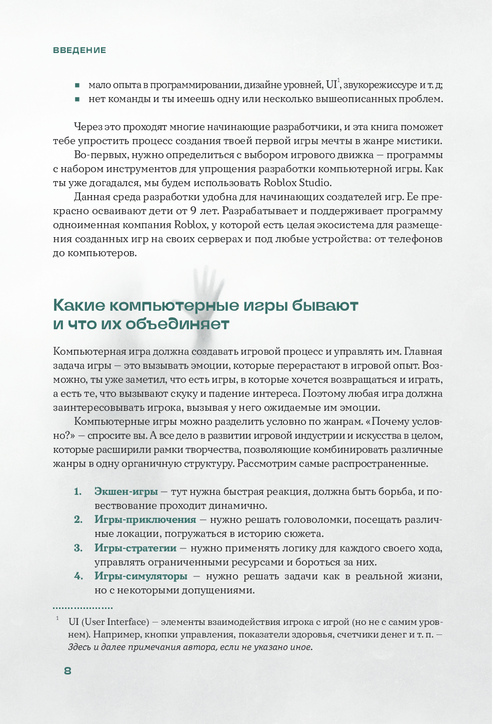 Игры в жанре хоррор и мистики – одни из самых популярных в Роблокс. Почти каждый начинающий разработчик рано или поздно пробует себя в создании пугающих миров, но лишь немногие знают, как действительно напугать игрока. Эта книга откроет тебе секреты жанра и шаг за шагом научит создавать по-настоящему атмосферные хоррор-игры с нуля.