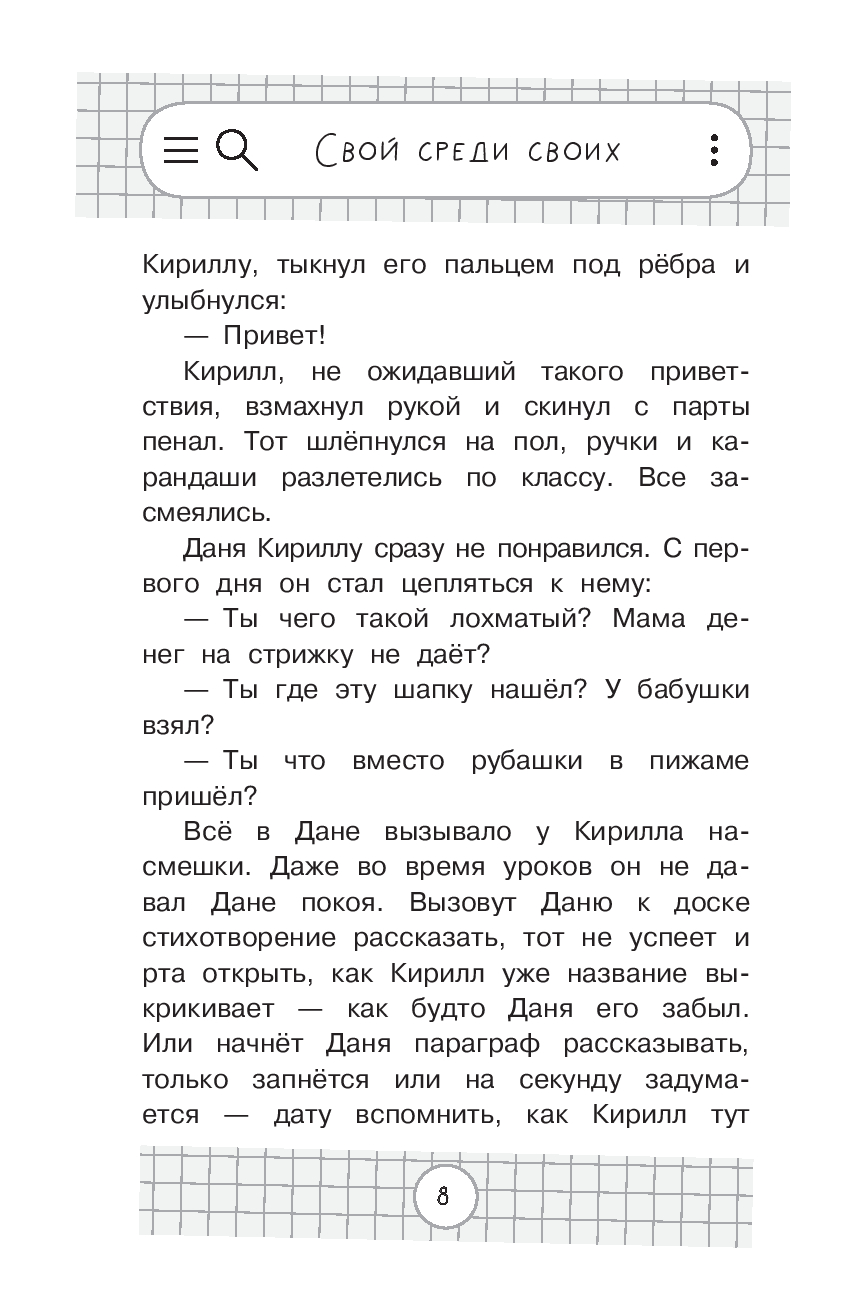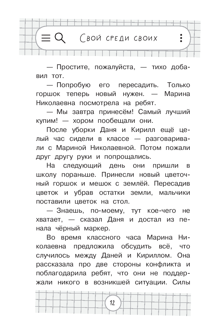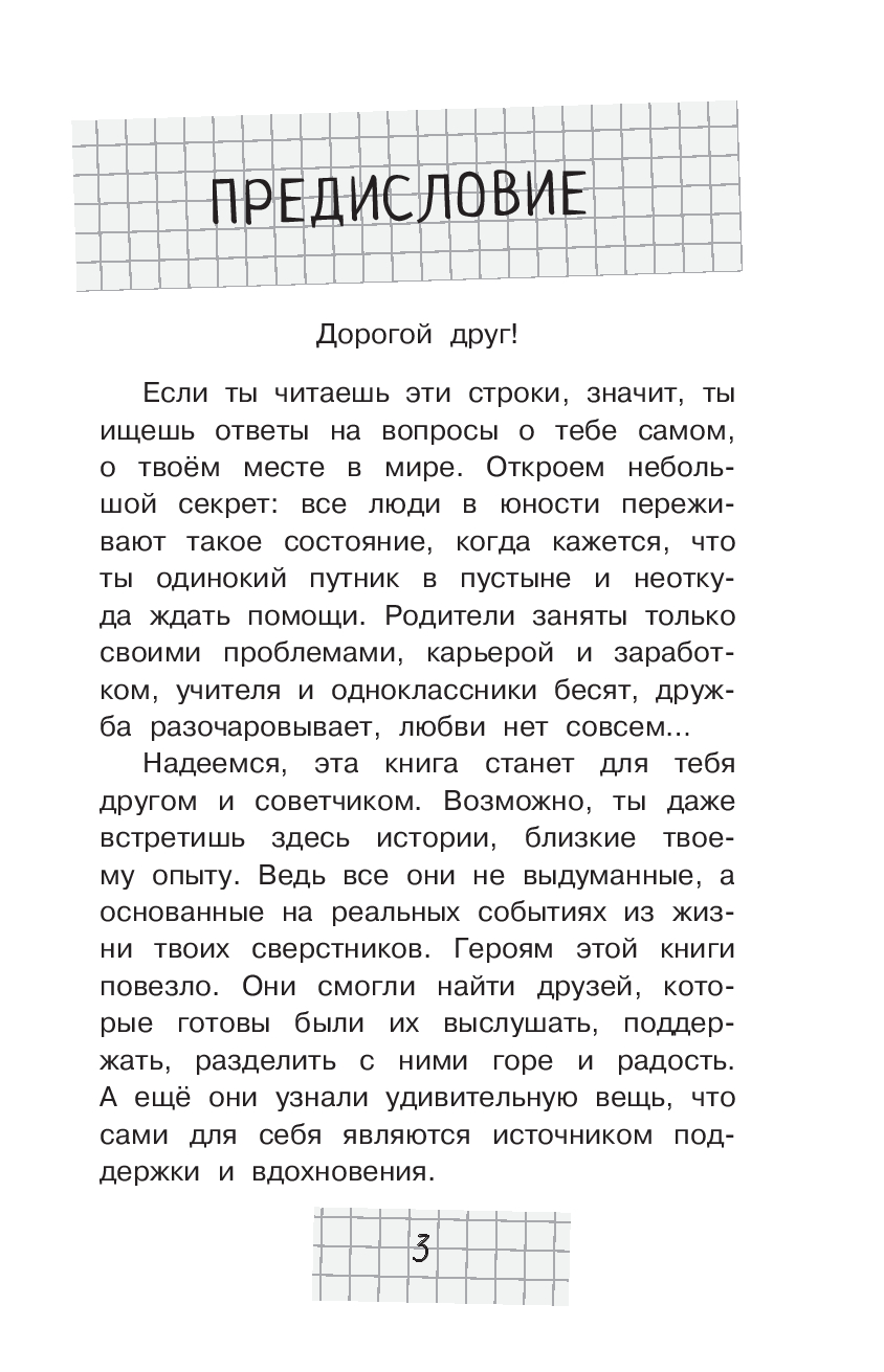 В книге собраны истории, которые раскрывают важный секрет успешной школьной жизни и веры в себя. Так сложно бывает найти своё место в классе, получить удовольствие от учёбы! Иногда чувствуешь себя одиноким в кругу друзей и близких. Рассказы о школе, дружбе, первой любви не выдумка, они основаны на реальных событиях. Задания и подсказки психолога в конце каждого раздела помогут разобраться в своих чувствах и подскажут, как найти общий язык с окружающими. Книга подарит вдохновение и внутреннюю силу, научит верить в себя и ценить каждую минуту!