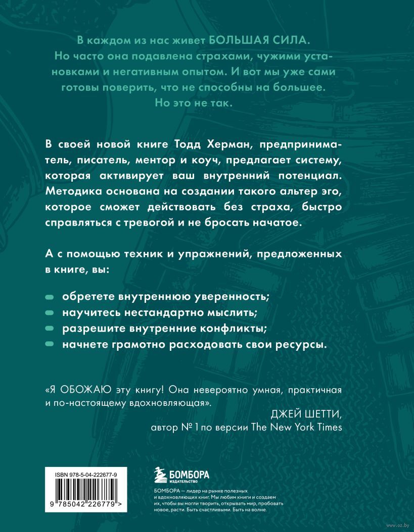 В этой книге Тодд Херман, предприниматель, писатель, ментор и коуч, предлагает систему, которая активирует ваш внутренний потенциал. Методика основана на создании такого альтер-эго, которое сможет действовать без страха, быстро справляться с тревогой и не бросать начатое.