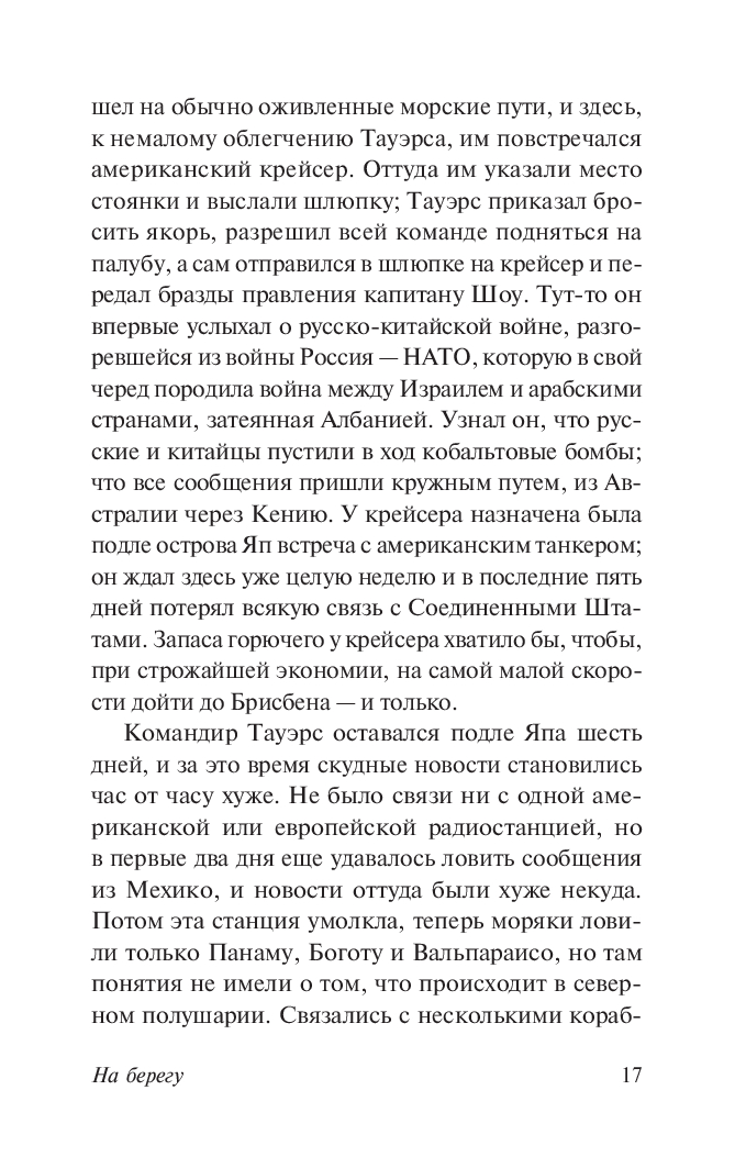 Вышедший в 1957 году роман Невила Шюта произвел фурор и по сей день считается одним из самых шокирующих и отрезвляющих описаний последствий ядерной войны. Роман дважды экранизировался, причем версия 1959 года с Грегори Пеком, Авой Гарднер и Фредом Астером в главных ролях удостоилась двух номинаций на премию "Оскар".