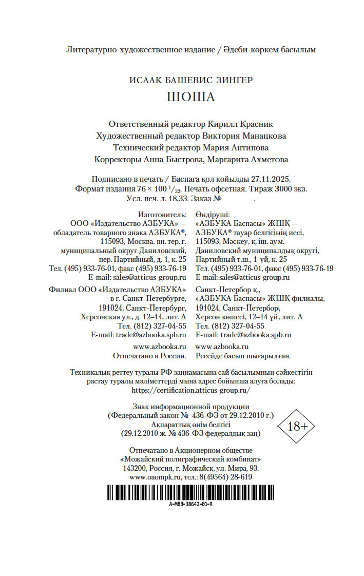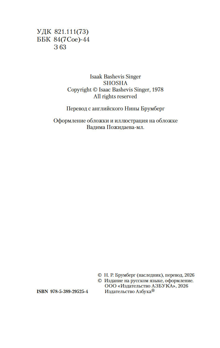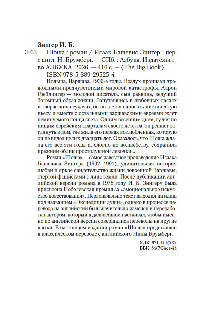 В настоящем издании роман "Шоша" представлен в классическом переводе с английского Нины Брумберг.