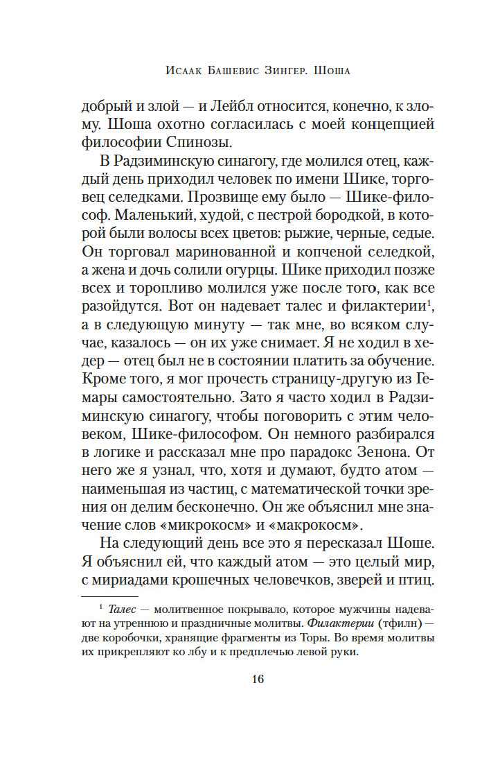 Роман "Шоша" – самое известное произведение Исаака Башевиса Зингера (1902-1991), удивительная история любви и яркое свидетельство жизни довоенной Варшавы, стертой фашистами с лица земли. После публикации английской версии романа в 1978 году И. Б. Зингеру была присвоена Нобелевская премия за "эмоциональное искусство повествования". Первоначально текст выходил на идиш под названием "Экспедиции души", однако в процессе перевода на английский был значительно изменен и переработан автором, который в дальнейшем настаивал, чтобы именно по английской версии совершались переводы на другие языки.
